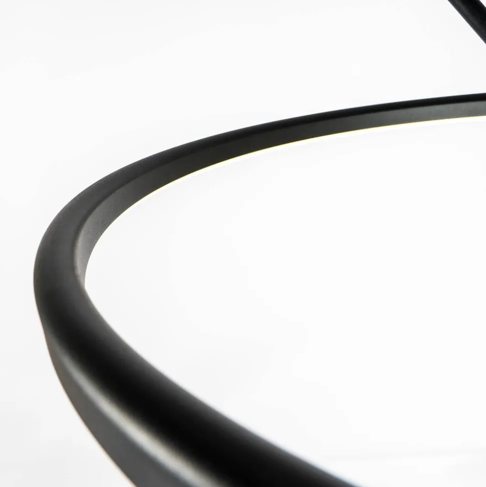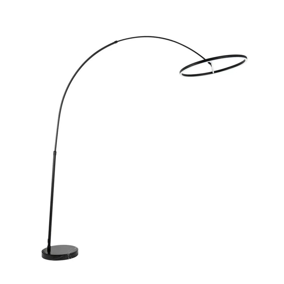 Elegante Virvera LED boog vloerlamp met een moderne uitstraling – ideaal als woonkamerverlichting Virvera slaat een goed figuur in moderne woonkamers met haar delicate en toch expansieve ontwerp. Het oppervlak van het aluminium frame is zwart, wat er opvallend uitziet en een zekere koelte creëert. De kap is meer een ring en deze kan worden gedraaid zodat het licht van de LED’s niet alleen naar beneden schijnt en voldoende licht geeft om te lezen, maar ook naar het plafond kan wijzen om de functie van een schijnwerper aan te nemen, waardoor een zeer aangenaam en zacht licht ontstaat dat een bijzonder huiselijke sfeer heeft. De voetschakelaar bevindt zich in de voedingskabel van de LED boogvormige vloerlamp en naast een bank met een eigentijds ontwerp ziet Virvera er zeer elegant en subliem uit.