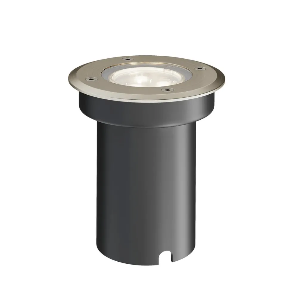 Ava ronde grondspot inbouwlamp met roestvrijstalen rand en warmwitte Cree LED’s De Ava LED grondspot inbouwlamp voor buiten heeft een relatief klassiek ontwerp en kan daarom op verschillende manieren worden gebruikt. De geïntegreerde LED technologie is daarentegen uiterst modern en toekomstgericht, met 3 lichtgevende diodes van elk 1 watt die in een warmwitte lichtkleur schijnen. De bijpassende inbouwdoos en schroeven zijn al bij de levering inbegrepen en de aansluitkabel heeft een open uiteinde. Doorbekabeling is mogelijk, zodat desgewenst meerdere armaturen achter elkaar kunnen worden geplaatst zonder dat voor elk armatuur een aparte voedingsaansluiting nodig is, omdat een tweede optionele kabeluitgang (het bijbehorende hulpstuk is bij de levering inbegrepen) verdere bekabeling naar het volgende armatuur mogelijk maakt. Met beschermingsgraad IP67 is de armatuur uitgebreid beschermd tegen het binnendringen van vuil en vocht. De grondspot inbouwlamp is berijdbaar en belastbaar tot 500 kg. Algemene informatie over armaturen voor inbouw in de grond: Om lang plezier van de grondspot inbouwlampen te hebben, moet voor een goede afwatering en een geschikt grindbed worden gezorgd. Installeer grondspot inbouwlampen niet in holtes of depressies – er mag zich geen stilstaand water op de armatuur (of in de inbouwdoos) verzamelen.