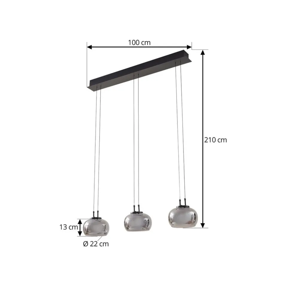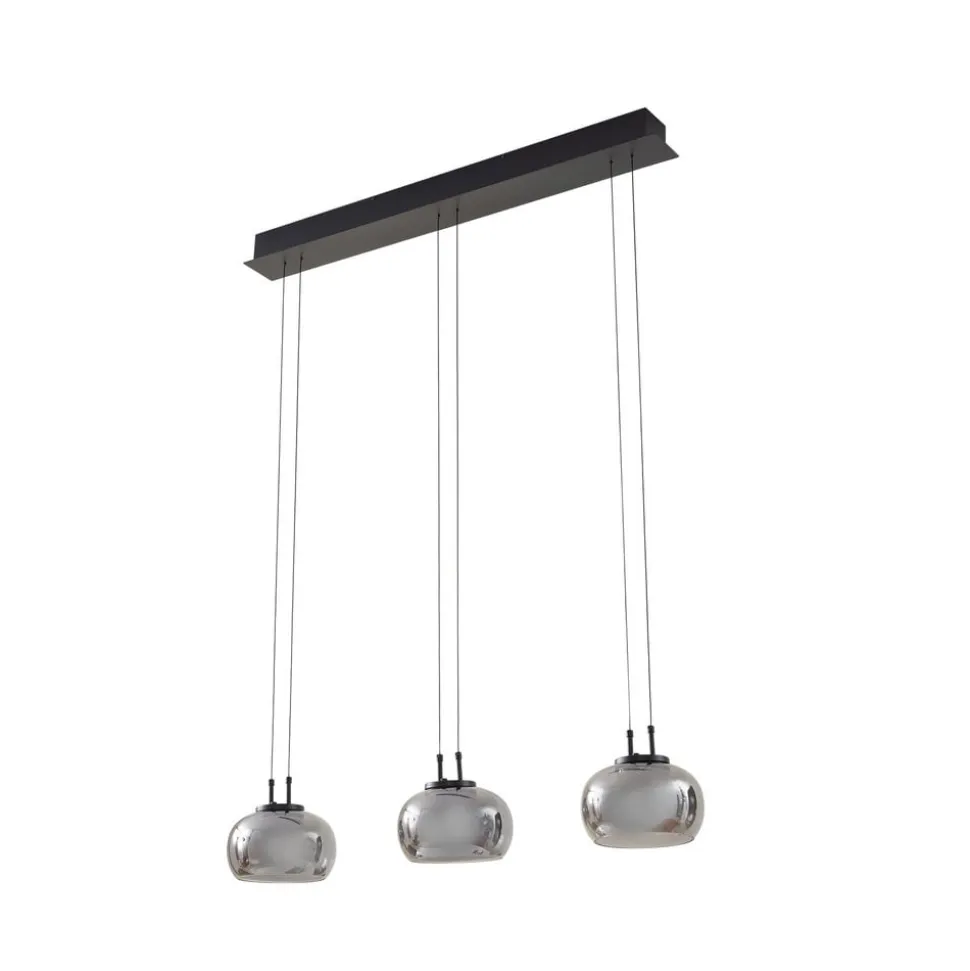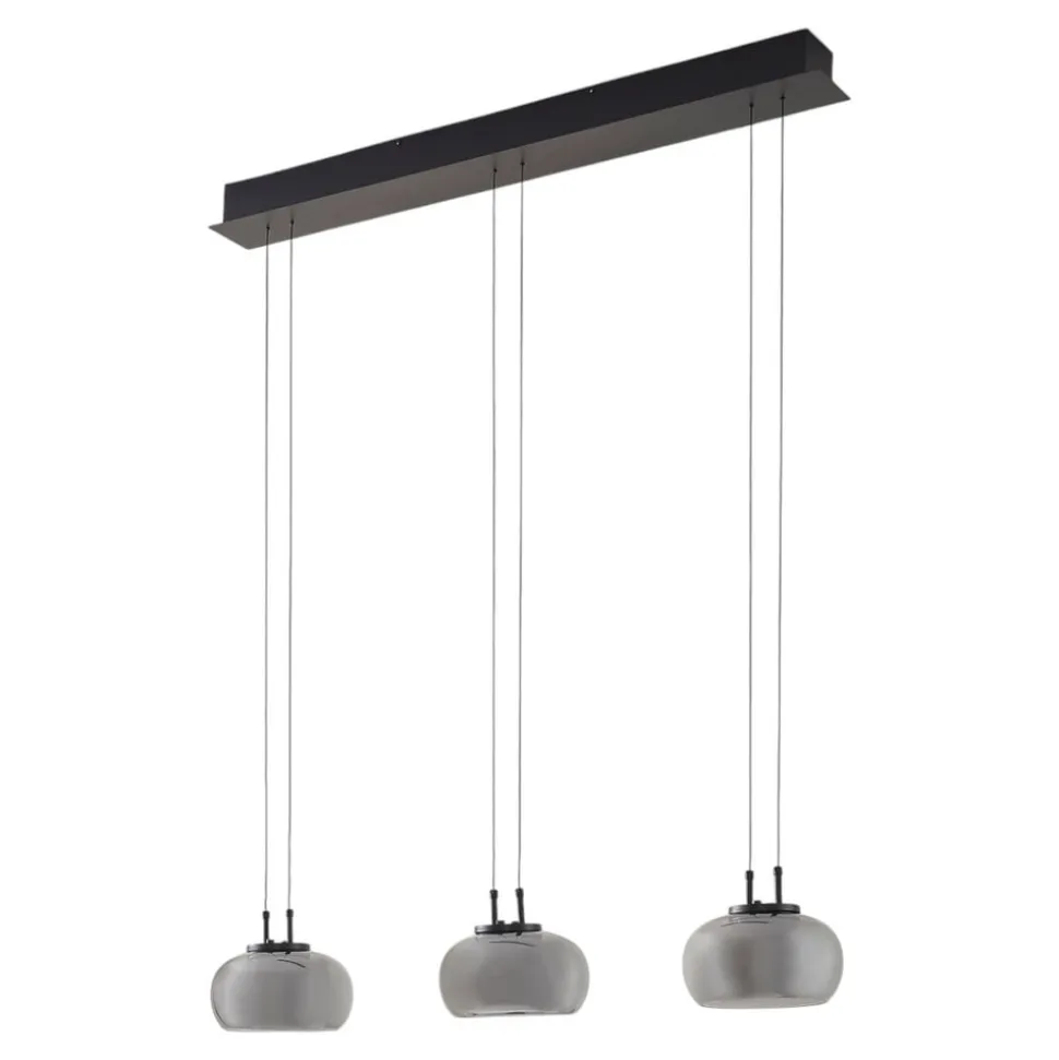 LED hanglamp 3-lamps Dain in rookgrijs met glazen kap De LED hanglamp 3-lamps Dain met rookgrijs glas zorgt voor sfeervolle verlichting in elke kamer. De geïntegreerde LED-lichtbron garandeert niet alleen energiezuinige verlichting, maar ook een lange levensduur. Dit armatuur is bijzonder effectief in eet- en woonkamers en creëert een sfeer die uitnodigt tot ontspannen en gezellig samenzijn – de afhanghoogte is verstelbaar van 28 – 210 cm