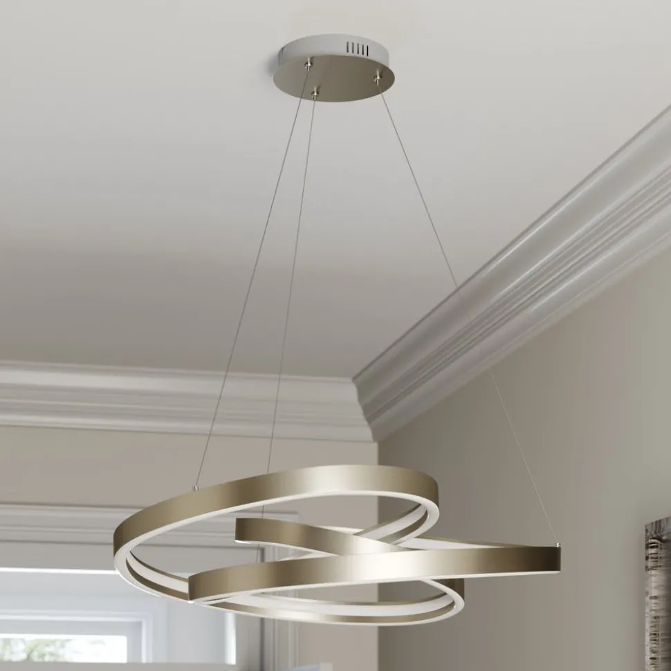 Gunbritt LED hanglamp lijkt te zweven Het lijkt bijna alsof de Gunbritt LED hanglamp gewichtloos is. De drie kabels waaraan de lamp hangt, zijn zeer discreet vormgegeven. Een ander pluspunt van het armatuur is het ongebruikelijke verlichtingsontwerp: het armatuur presenteert zilvergrijs metaal aan de buiten- en bovenkant, terwijl het licht naar beneden en naar binnen wordt uitgestraald, onderbroken door een andere strip metaal. Het licht kan ook worden gedimd tot 100% / 50% / 10% met een standaard wandschakelaar.