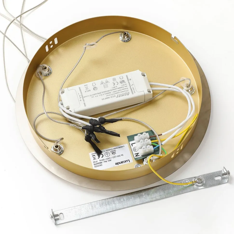 Lucande LED hanglamp Hayley, Ø 30 cm, 5-lamps, goud, glas
