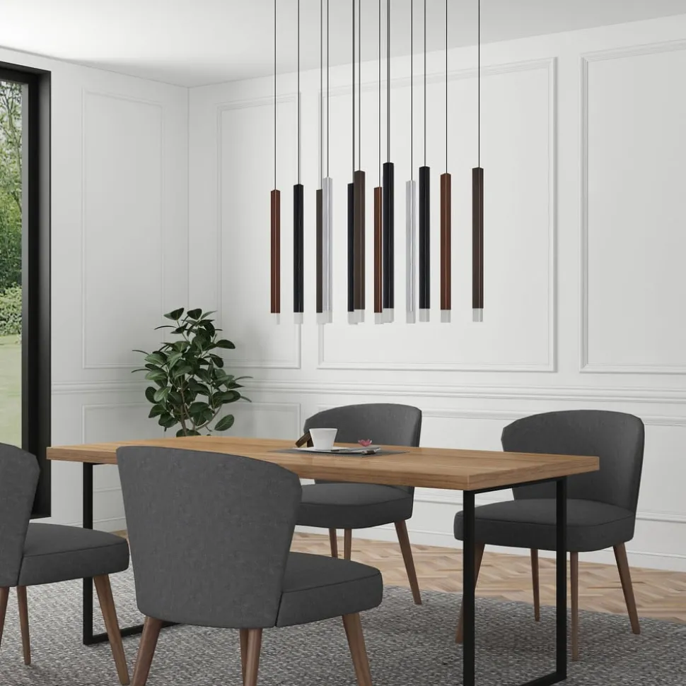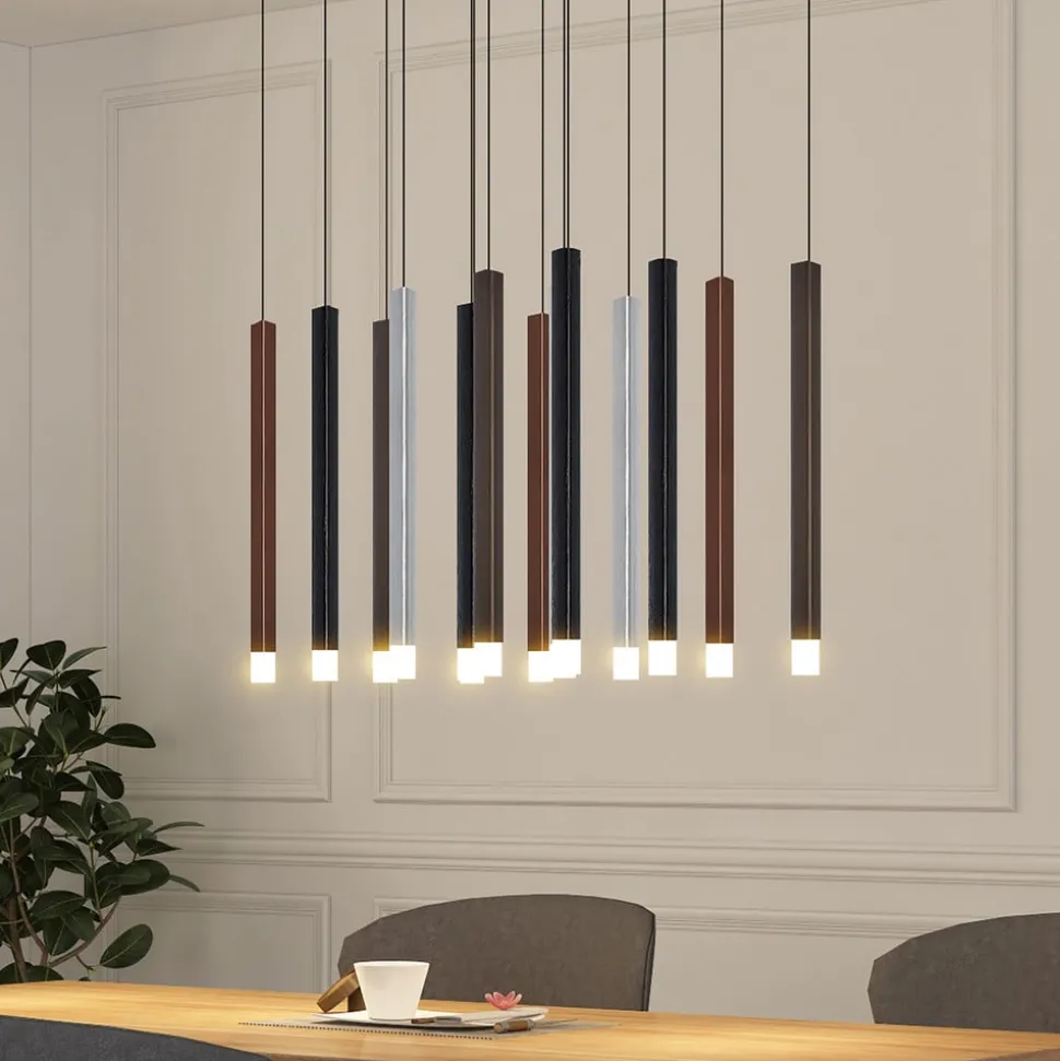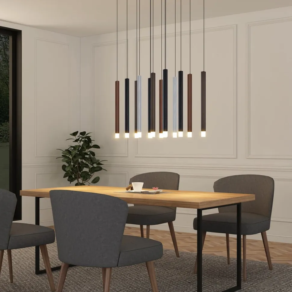 Hoogwaardige LED hanglamp Stoika schittert in een ongewoon design De LED hanglamp Stoika maakt meteen indruk met haar 16-lamps design. De plafondhouder in matzwart springt meteen in het oog met zijn rechthoekige vorm. De hangende lichtstaven hebben verschillende kleuren gekregen, die goed bij elkaar passen en het speciale karakter van dit armatuur onderstrepen. Als je meer gezelligheid in de sfeer van de ruimte wilt brengen, kun je de helderheid van het armatuur in een handomdraai aanpassen aan je eigen wensen. Dankzij de 3-staps dimtechnologie met geïntegreerde OFF-functie kan dit armatuur tot drie verschillende niveaus worden gedimd door meerdere keren op de wandschakelaar te drukken: 100 %, 50 % en 10 %. De slagvastheidsklasse IK08 kenmerkt Stoika als een robuust armatuur. 3-staps dim + uit: Een wandschakelaar maakt het mogelijk om het armatuur zoals gewoonlijk in en uit te schakelen. Dankzij de 3-staps dimtechnologie met geïntegreerde off-functie kan het armatuur ook tot drie verschillende helderheidsniveaus worden gedimd door meerdere keren op de schakelaar te drukken: 100 %, 50 % en 10 %.