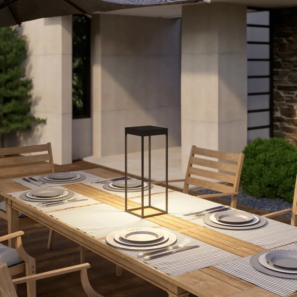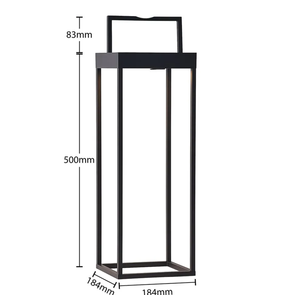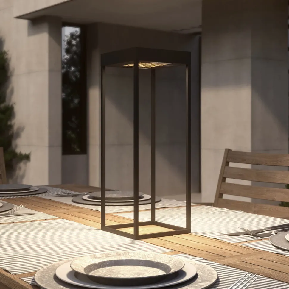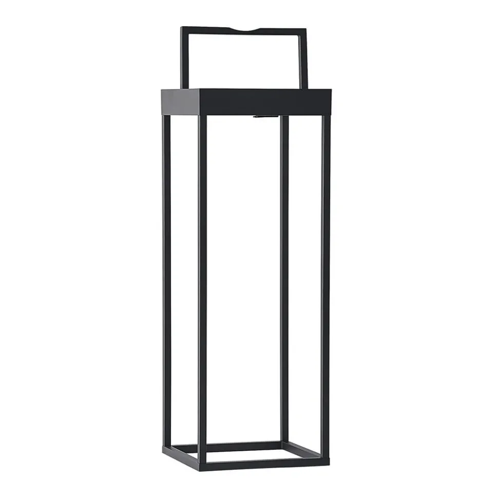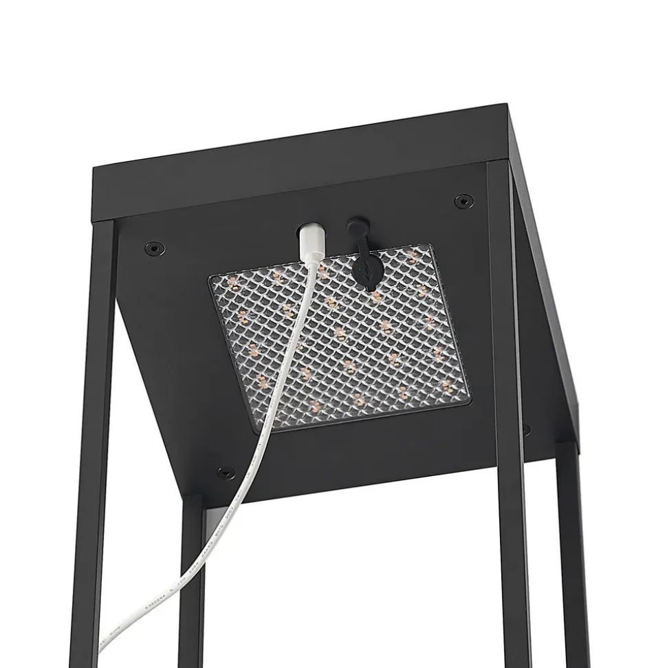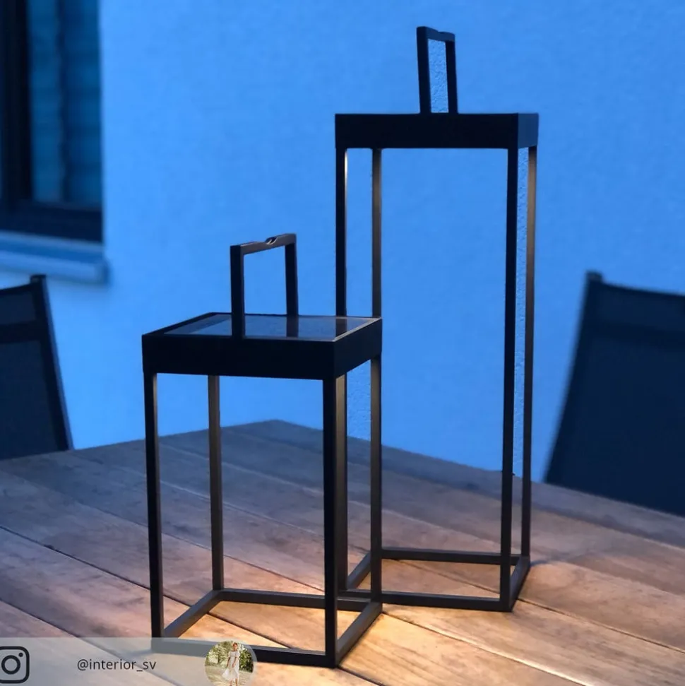 Moderne Lynzy LED lamp op zonne-energie van zwart aluminium De Lynzy LED lamp op zonne-energie maakt indruk met zijn eenvoudige, moderne uiterlijk en is perfect voor buitengebruik. De armatuur is een kubusvormig frame dat bestaat uit smalle aluminium stangen. Binnenin zitten permanent geïnstalleerde LED’s die een warmwit licht produceren. De lamp kan worden opgeladen via het zonnepaneel of met een USB-kabel. Dankzij de afneembare muurbeugel kan de lamp worden gebruikt als wandlamp of tafellamp. Het discrete ontwerp past moeiteloos bij de architecturale stijl van een huis of bij de rest van het meubilair op het terras – CCT 2.700 K of 3.000 K – Traploos dimbaar 5% – 100% – Levensduur batterij > 9 uur – USB-aansluiting – Beschermgraad IP65