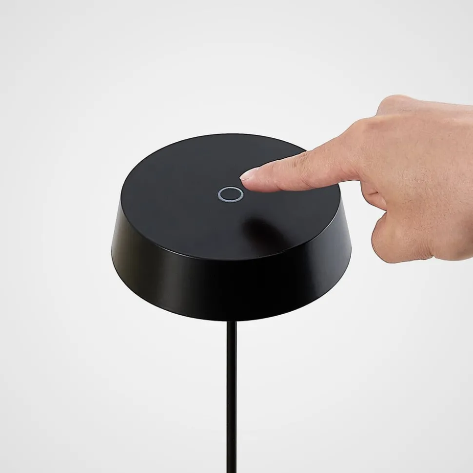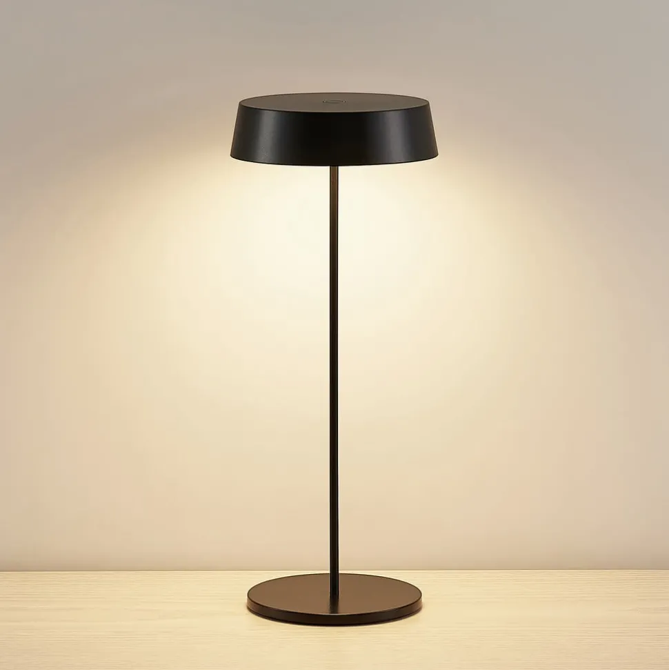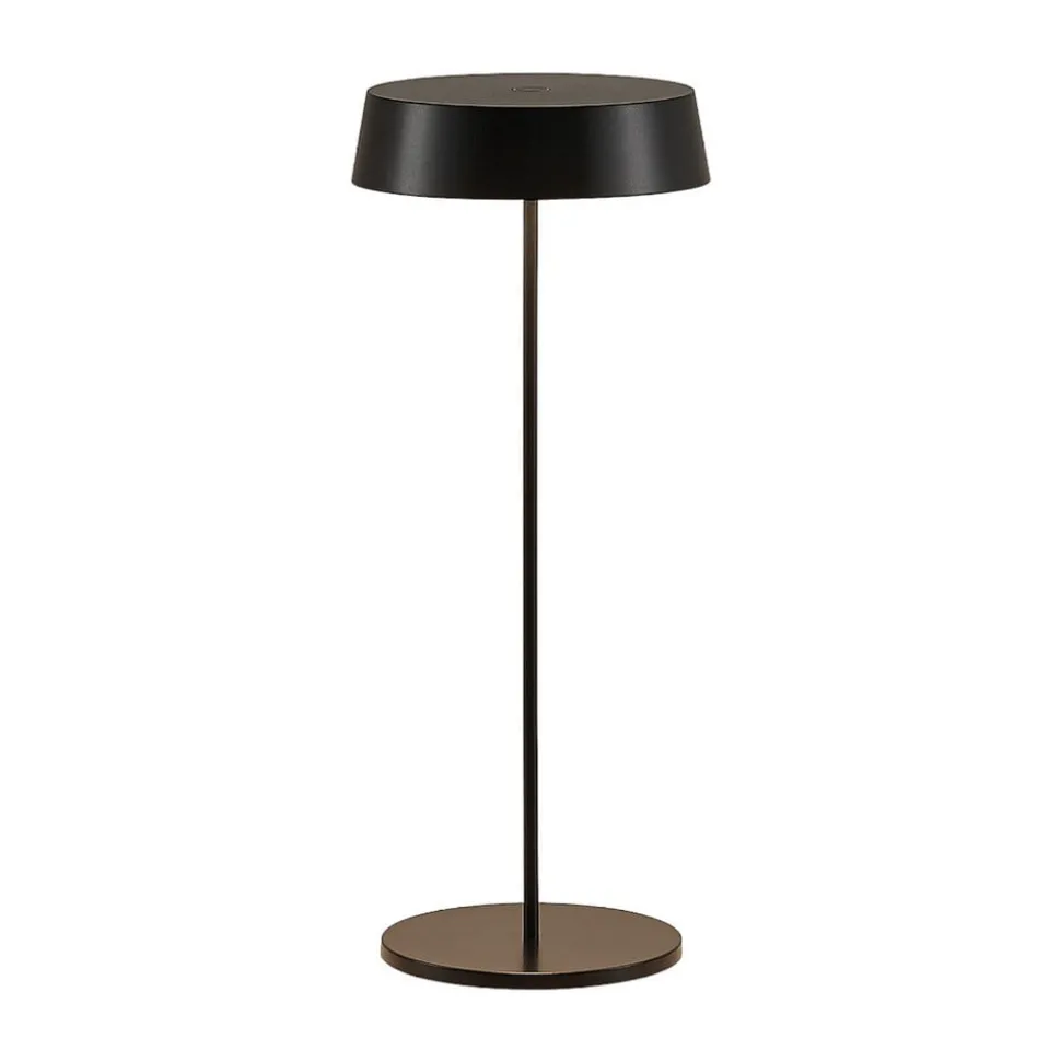 Zwarte LED tafellamp Tibia met oplaadfunctie, IP54 De LED tafellamp Tibia heeft een chique ontwerp en beschikt ook over geweldige technische functies. Hij is volledig gemaakt van gegoten aluminium met een modieuze zwarte afwerking. De platte kap heeft een eigentijdse look en zorgt ervoor dat het licht naar beneden wordt uitgestraald zonder te verblinden. Dit armatuur heeft een geïntegreerde touchdim-functie waarmee het licht traploos kan worden gedimd. Het heeft ook een geïntegreerde oplaadbare batterij die kan worden opgeladen met een USB-kabel. Dit maakt het mogelijk om het armatuur volledig onafhankelijk van het lichtnet te gebruiken en op te stellen waar het nodig is. De beschermingsgraad IP54 maakt zelfs gebruik buitenshuis mogelijk.