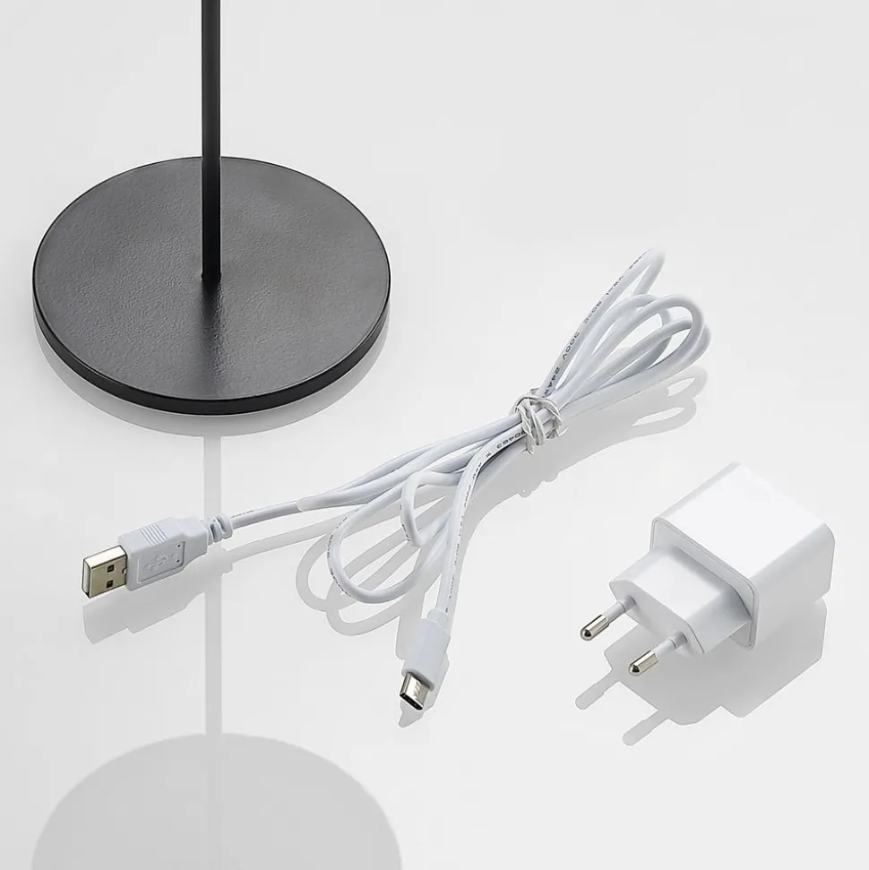 Lucande LED oplaadbare tafellamp Tibia, zwart, aluminium, USB, IP54