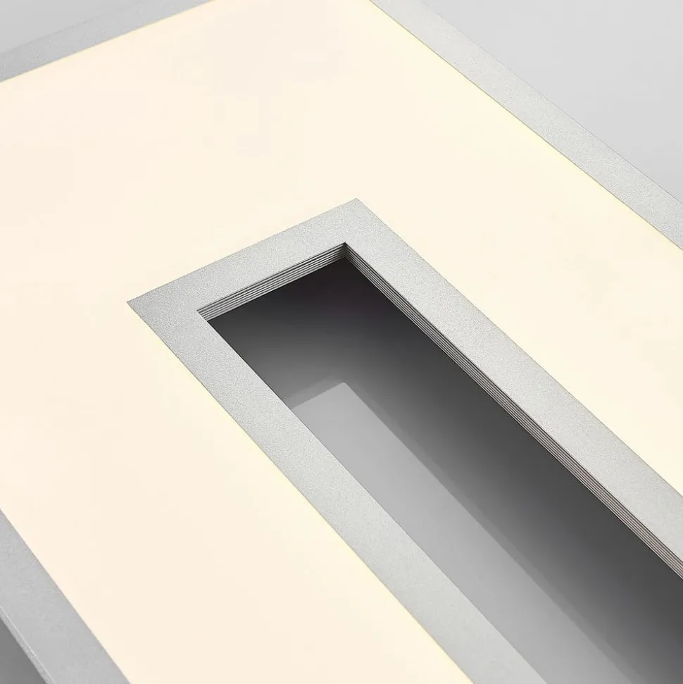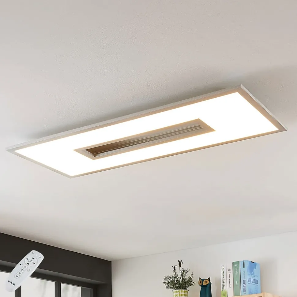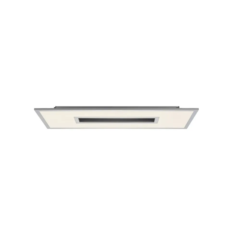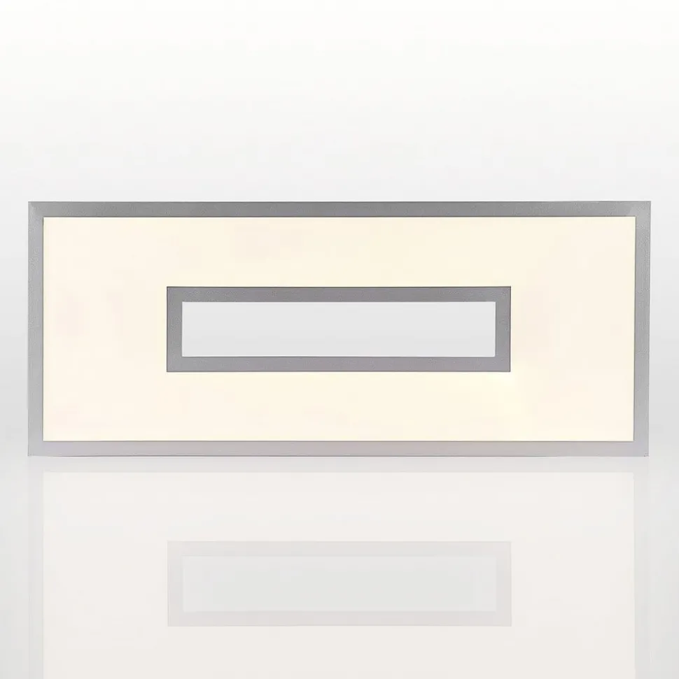 Durun hoekige LED plafondlamp met verschillende instelmogelijkheden voor lichtkleur en helderheid Durun is een plafondlamp met een wit verlicht oppervlak en zilverkleurig frame die net zo geschikt is voor privégebruik als voor gebruik in een commerciële omgeving. Er is een aantrekkelijke uitsparing in het midden die de look individualiseert. Technisch gezien scoort de LED plafondlamp met vele functies. Ten eerste kan de lichtkleur in drie stappen worden ingesteld met de wandschakelaar en ten tweede kan ook de helderheid worden aangepast. Dit gebeurt met de meegeleverde afstandsbediening, waarmee de helderheid in 15 niveaus kan worden ingesteld en waarmee continu kan worden gedimd. Dankzij de geheugenfunctie (helderheid en lichtkleur) blijven de geselecteerde waarden behouden tot de volgende keer dat de lamp wordt ingeschakeld. Je kunt de lamp ook in de nachtmodus laten werken of de timer van 15 minuten gebruiken om ervoor te zorgen dat de lamp na deze tijd automatisch uitschakelt.