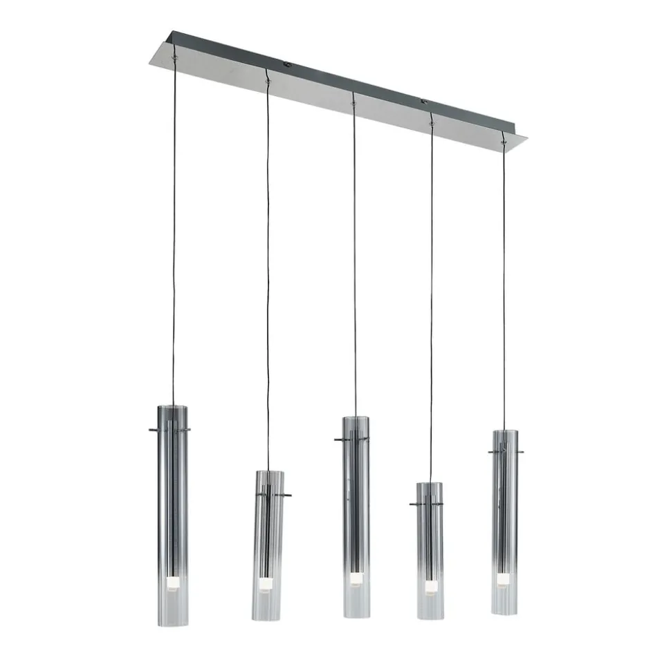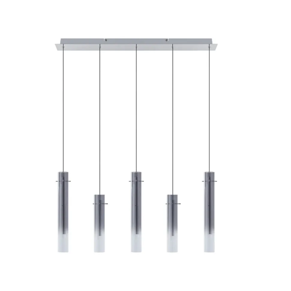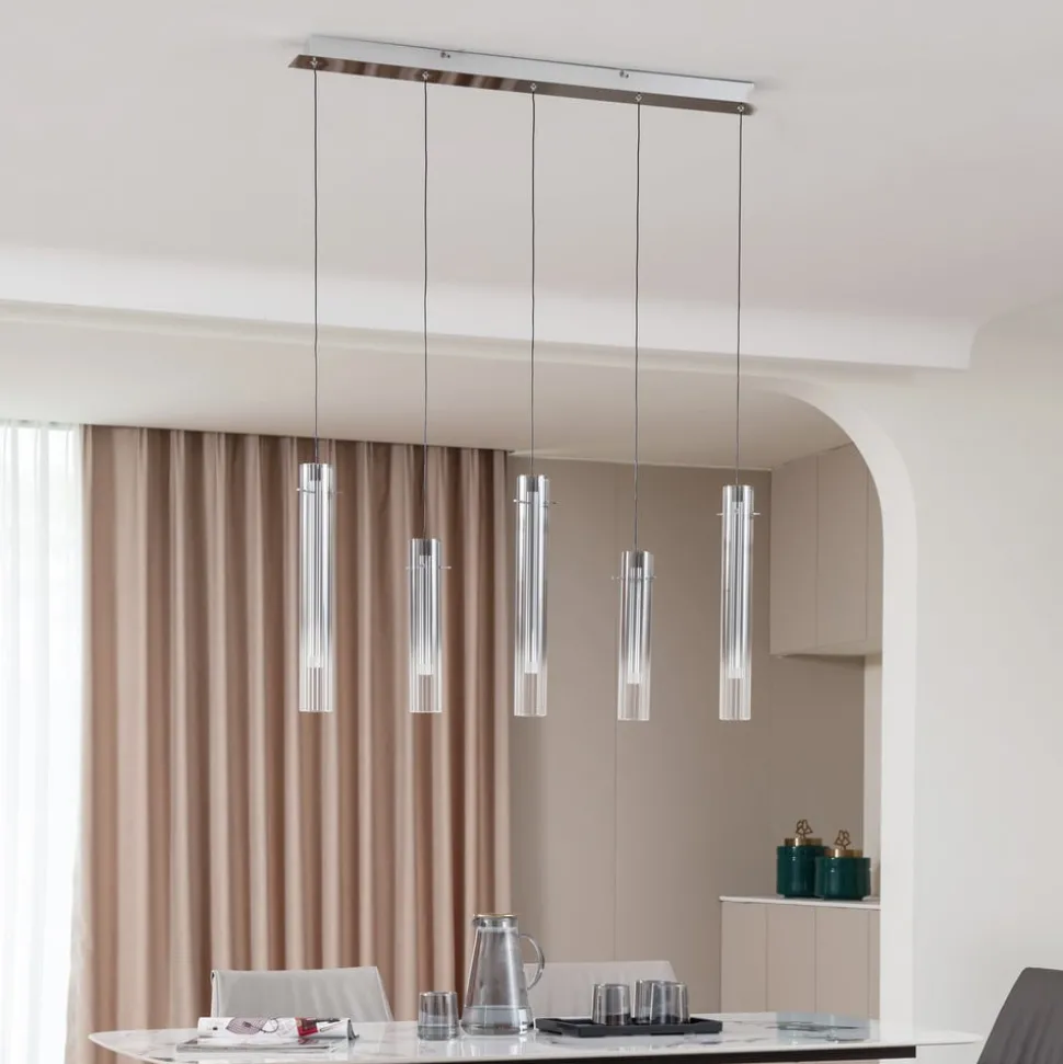 Korvitha hanglamp met 5-lamps design Deze prachtig vormgegeven lamp zorgt voor een aangename woonsfeer en uitstekende verlichting in je huis. De hanglamp is een uitstekende lichtbron voor veel kamers en wordt een decoratief element dankzij het stijlvolle ontwerp. Deze plafondlamp van het merk Lucande wordt gekenmerkt door een smaakvol ontwerp en een overtuigende woonsfeer. Met de hanglamp kun je de lichtsterkte in drie niveaus (10 %, 50 % en 100 %) aanpassen met behulp van een wandschakelaar. De warmwitte kleur van het licht baadt je woonruimte in een gezellige sfeer. Deze lamp creëert een prachtige sfeer in elke ruimte en voegt een tijdloos element toe aan je interieur. Dankzij haar opvallende verschijning harmonieert de interieurlamp in grijs en zilver met elk interieur en creëert ze een feelgood sfeer. Een gezellige woonsfeer is gegarandeerd met deze hanglamp.