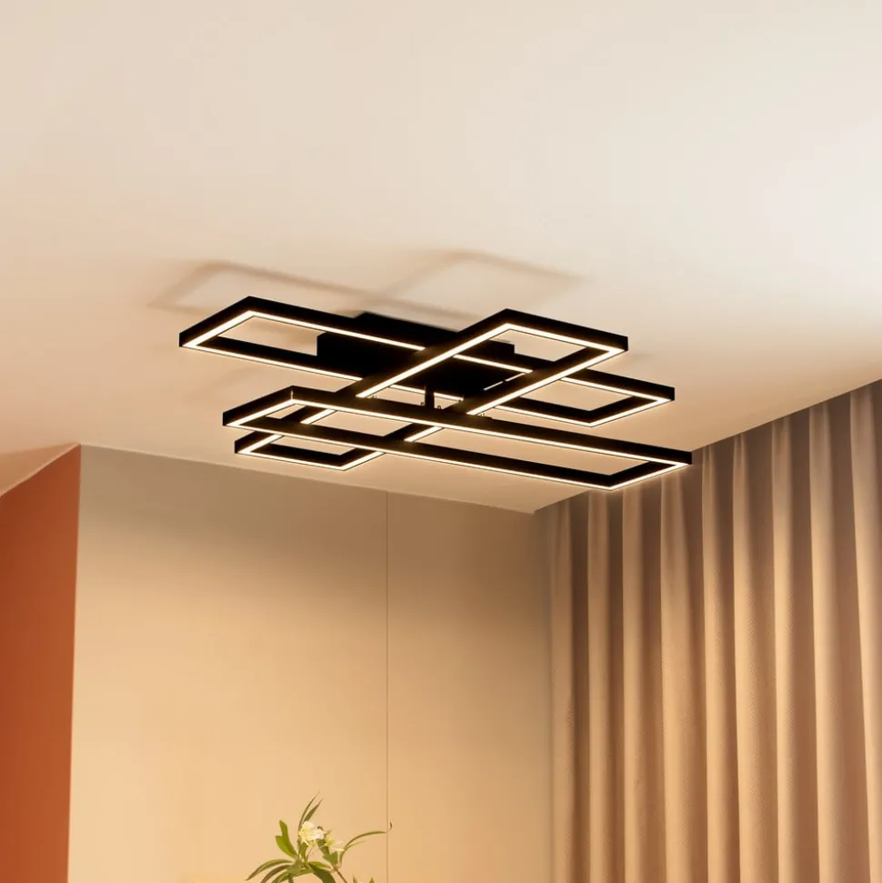 Dimbare LED plafondlamp Tjado met drie lichtframes Deze aantrekkelijke plafondlamp combineert functionele verlichting met een aantrekkelijk ontwerp. Dankzij de dimmeroptie (10%, 50% en 100%) kun je de lichtsterkte met een lichtschakelaar aanpassen aan je stemming. De plafondlamp past bij bijna elke stijl en is een aanwinst voor je kamer dankzij haar aantrekkelijke uiterlijk. De lamp geeft licht met een aangename warmwitte lichttemperatuur. Het licht creëert een stijlvolle sfeer en zet je woonruimte bijzonder goed in scène. Alle kwaliteiten en speciale kenmerken die het merk Lucande kenmerken, zijn samengebracht in deze plafondlamp. De lamp is zwart van kleur. Het aangename licht van het armatuur is ideaal om elke ruimte te accentueren. Een gezellige sfeer is gegarandeerd met deze lamp.