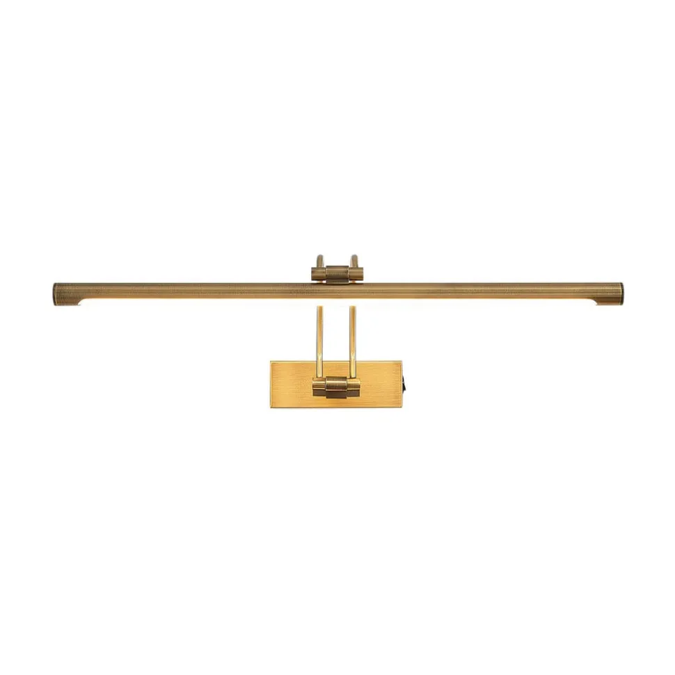 Dimitrij gebogen LED schilderij verlichting De gebogen arm en de lange, smalle kap en de antiek messing kleur geven de Dimitrij schilderij verlichting een zeer elegante uitstraling. De lamp is uitgerust met LED’s die het te verlichten schilderij baden in een warmwit licht, zodat de kleuren het best tot hun recht komen. De kap en muurbeugel hebben ook scharnieren waarmee de richting van de lichtstraal in een handomdraai kan worden aangepast.