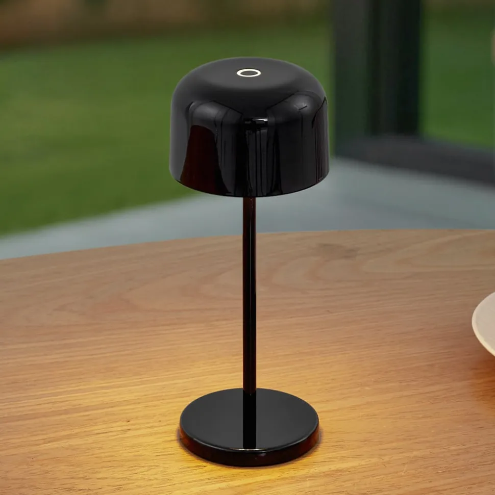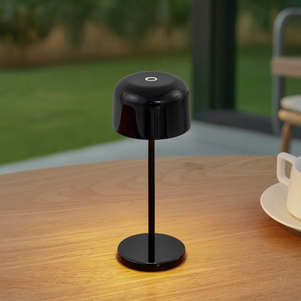 Quill LED tafellamp met CCT-functie De Quill LED tafellamp van Lucande is een stijlvolle aanvulling voor elke buitenruimte. Met haar beschermingsgraad IP54 is ze ideaal voor gebruik op terrassen en balkons, waar ze niet alleen indruk maakt met haar moderne design in strak zwart, maar ook met haar functionaliteit. De geïntegreerde CCT-functie maakt het mogelijk om de lichtkleur individueel aan te passen in het warmwitspectrum, zodat voor elke stemming en activiteit de juiste sfeer kan worden gecreëerd. Het hoogwaardige materiaal van aluminium en polycarbonaat belooft duurzaamheid en weerstand. Dankzij de geïntegreerde LED lichtbron en energiezuinige eigenschappen is deze tafellamp niet alleen een visuele verbetering, maar ook een bewuste keuze voor duurzaam licht. De meegeleverde dimmer maakt het mogelijk om de lichtsterkte naar wens aan te passen, wat ook bijdraagt aan het aanpassingsvermogen van de lamp. Bij de levering is een oplaadstation met kabel en stekker inbegrepen, wat zorgt voor ongecompliceerd gebruik van de tafellamp. Of het nu voor een gezellig samenzijn is of als lichtbron voor ontspannen avonduren – Quill is een veelzijdige en elegante oplossing voor elke buitenruimte – Verlichtingsduur 7u – Oplaadduur 3u