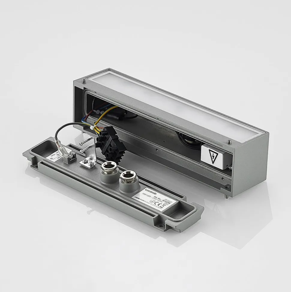 Lucande LED wandlamp Lengo, 25 cm, zilver, 2-lamps, IP65