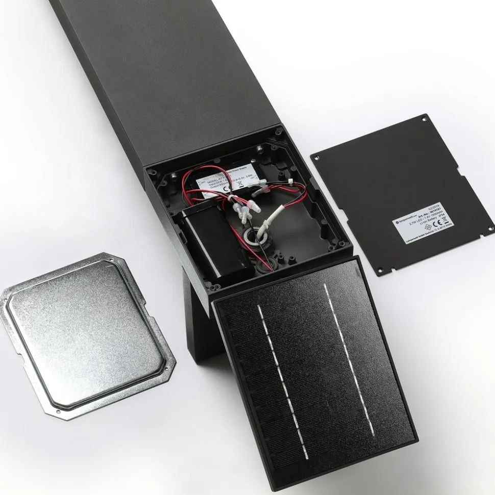 Donkergrijze Silvan LED tuinpadverlichting op zonne-energie met sensor De Silvan LED tuinpadverlichting met geïntegreerde zonnemodule en bewegingsmelder geeft het hele buitenverlichtingsconcept zowel stijl als een efficiënte energieoplossing. De donkergrijze kleur van de tuinpadverlichting straalt tijdloze elegantie uit, die wordt onderstreept door de slanke aluminium voet. De zonnemodule is elegant geïntegreerd in het algemene model en schakelt automatisch over op dag- en nachtmodus. De sensor biedt ook twee extra functies om de aangename padverlichting te activeren wanneer beweging wordt gedetecteerd of ’s nachts met gedimde helderheid – kan in 2 modi branden – Modus 1: automatische 10 procent helderheid na zonsondergang, 100 procent helderheid gedurende een korte tijd wanneer beweging wordt gedetecteerd – Modus 2: licht is uit totdat beweging wordt gedetecteerd, dan volle helderheid gedurende een korte tijd – 120 graden detectiehoek – 15 seconden lichtduur – bereik 6 tot 10 meter