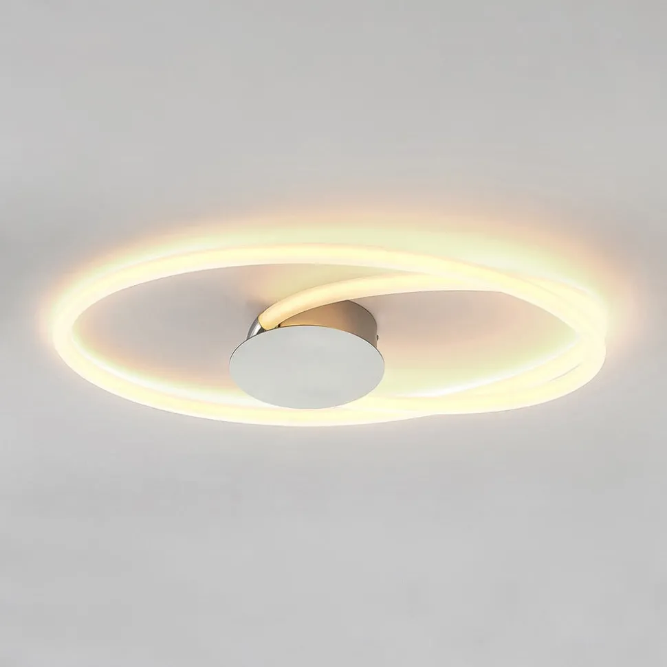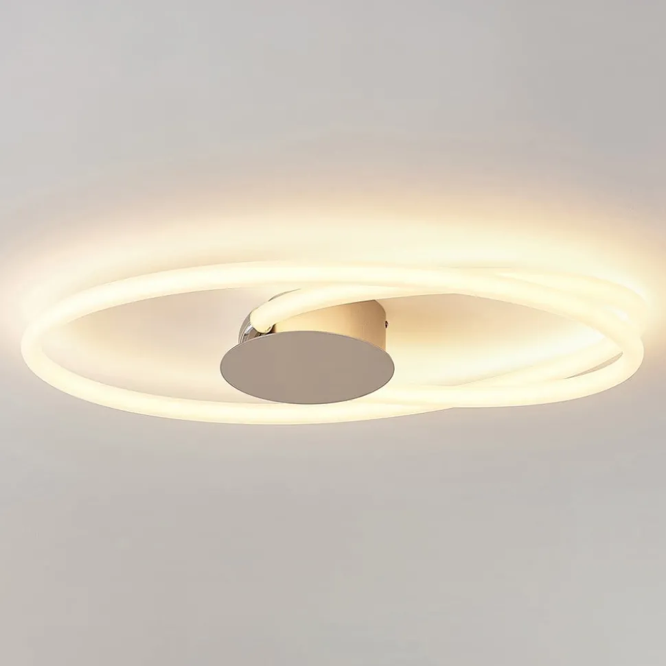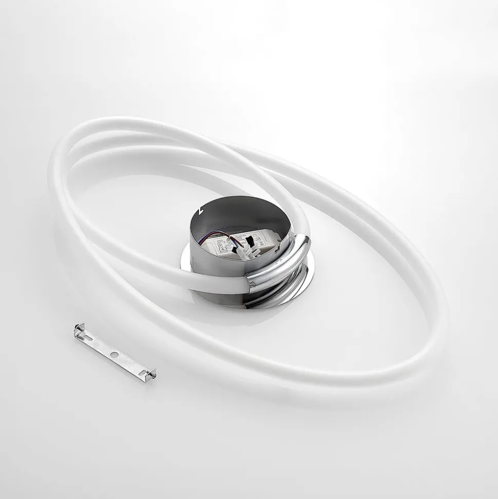 Elegante LED plafondlamp Ovala met praktische SWITCH Die mooie LED plafondlamp Ovala heeft een minimalistisch design dat de aandacht van de kijker trekt naar de essentie – namelijk de gebogen armatuur in de vorm van een buislamp. Deze lijkt te beginnen en te eindigen bij de ronde plafondlamp. Hij is gemaakt van roestvrij staal en schittert door zijn moderne look in chroom, die in bijna elk hedendaags interieur kan worden geïntegreerd. Die Oval Form, die wordt gecreëerd met behulp van de gebogen buislamp, creëert een harmonieuze indruk die zeker de moeite waard is om te zien. Das warmwitte licht wordt naar de omgeving uitgestraald met een stralingshoek van 360°, waardoor het gelijkmatig door de kamer wordt VERTEILERD. Indien gewenst kan de sfeer in de kamer eenvoudig worden veranderd, want met de Dime-dimfunctie kan de helderheid van de armatuur in drie stappen worden aangepast. 3-staps-dim + uit: Met een wandschakelaar kan de armatuur zoals gewoonlijk worden in- en uitgeschakeld. Dankzij de 3-staps dimtechnologie met geïntegreerde uit-functie kan het armatuur ook tot drie verschillende helderheidsniveaus worden gedimd door meerdere keren op de schakelaar te drukken: 100 %, 40 % en 10 %.