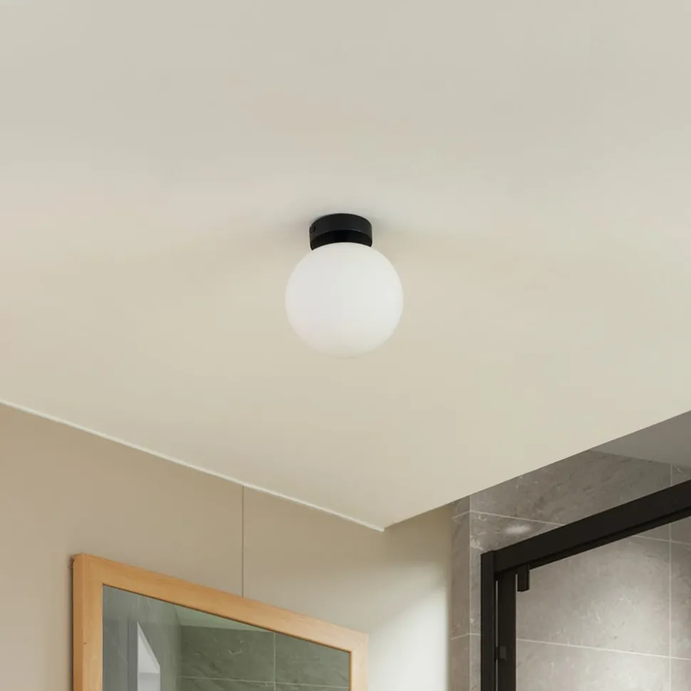 Bidolo bolvormige plafondlamp voor de badkamer De Bidolo plafondlamp is een echte blikvanger in elke kamer. De plafondlamp is perfect voor de badkamer (beschermingsgraad IP44) en zorgt voor een aangename verlichting. Ze is dimbaar (afhankelijk van de lamp), maar een dimmer (externe wanddimmer) is niet inbegrepen. Het aantrekkelijke ontwerp maakt de Bidolo plafondlamp een must-have voor iedereen die op zoek is naar stijlvolle verlichting.