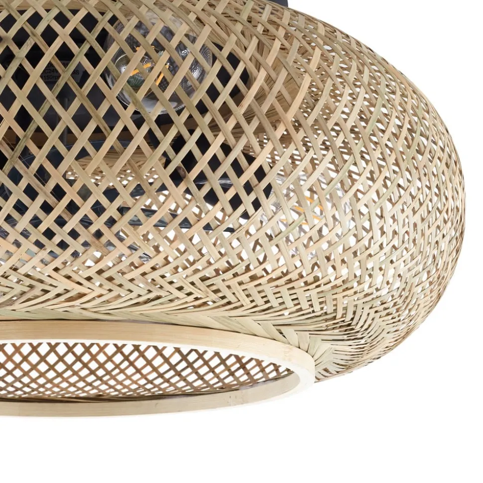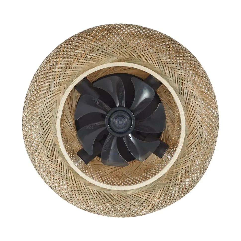 De plafondventilator Cordie combineert de natuurlijke schoonheid van bamboe met de robuustheid van metaal en creëert zo een harmonieus samenspel van esthetiek en functionaliteit. De stijlvolle combinatie van bamboe en zwart metaal past naadloos in een landelijke of rustieke omgeving en geeft elke woon- of eetkamer een warme, uitnodigende sfeer.
