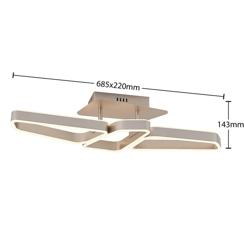 Fris design en overtuigende techniek – de LED plafondlamp Quinn is een echte verrijking voor de binnenhuisarchitectuur. De lampenkap bestaat uit drie asymmetrische vierkanten, waarvan de onder- en bovenzijde elk bezet zijn met LED’s achter een opalen siliconenlaag.