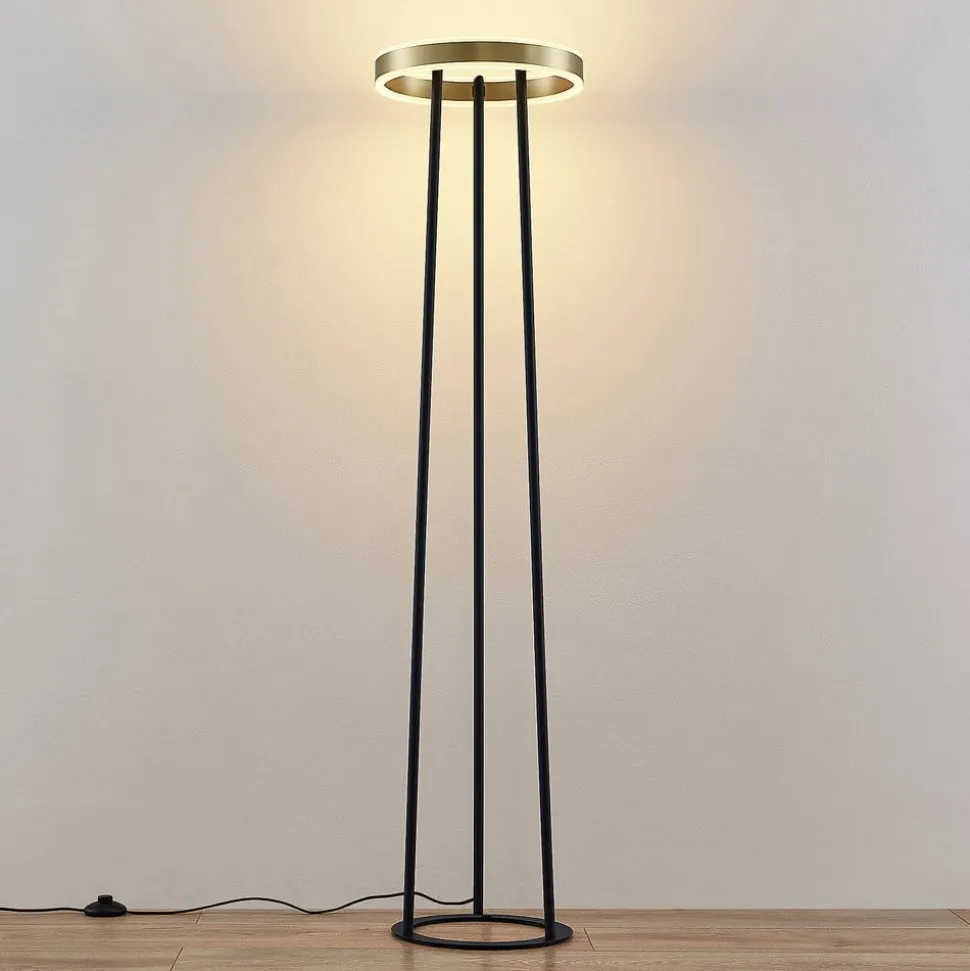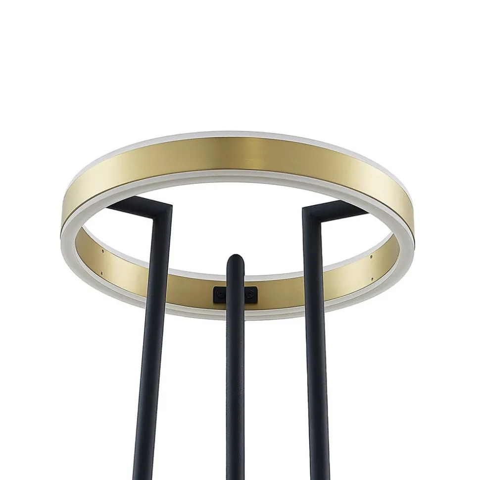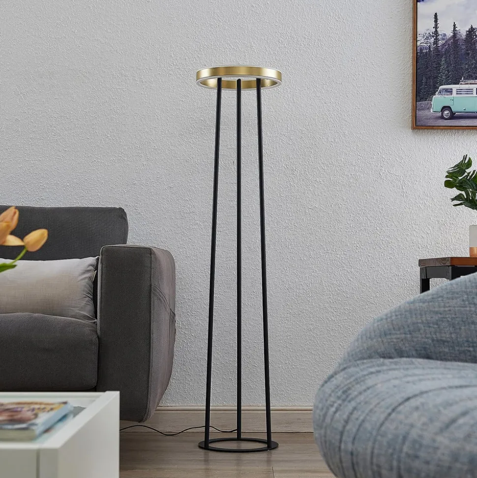 Slanke LED-vloerlamp Seppe in modern design in messing en zwart