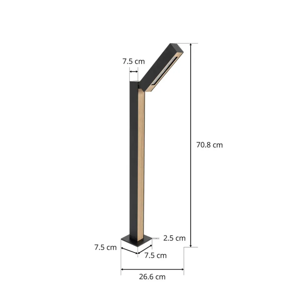 Taskalin kantelbare LED tuinpadverlichting met aantrekkelijk houtdecor De Taskalin LED tuinpadverlichting is een moderne verlichtingsoplossing voor tuinen en terrassen die indruk maakt door haar slanke en gewoon buitengewone look. Het aluminium frame is afgewerkt in zwart en versierd met een prachtig houtpatroon, dat ’s avonds wordt verlicht door de LED’s. Dankzij de moderne LED-technologie is het warmwit licht zuinig in verbruik en ziet het er buiten zeer uitnodigend uit. Omdat de lampenkop kan worden verplaatst, kan de richting van de lichtstraal naar wens worden aangepast – vooral praktisch in de donkere maanden van het jaar.