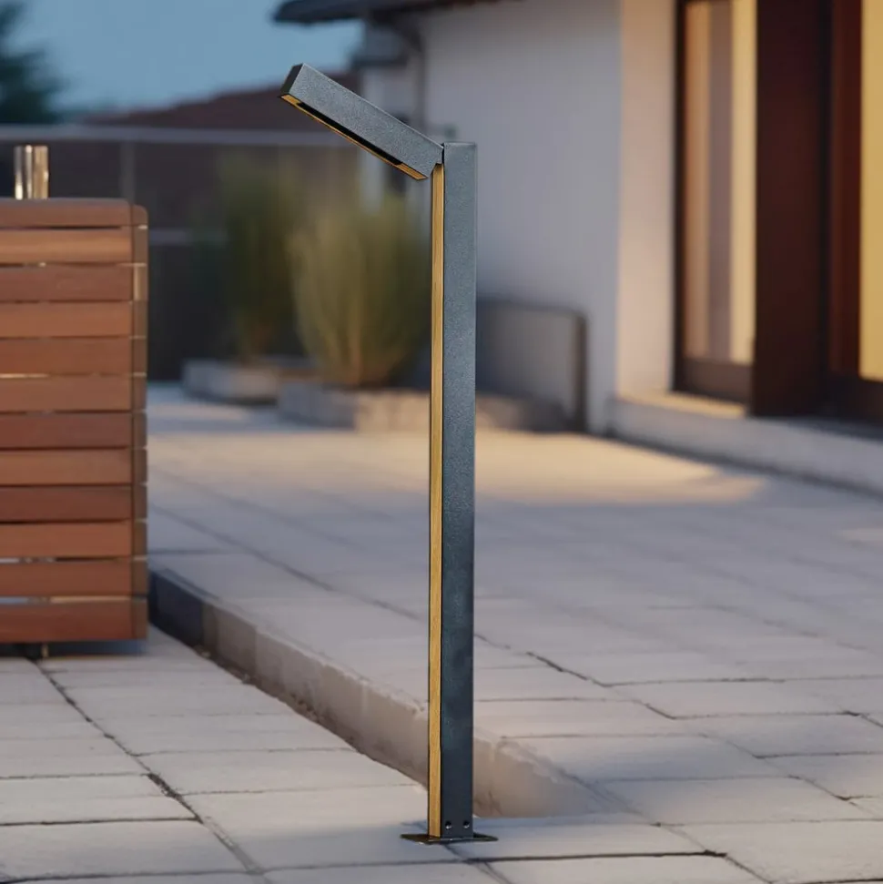Taskalin LED tuinpadverlichting in een strak design De Taskalin LED tuinpadverlichting maakt indruk met haar ongewone uiterlijk, dat ideaal is voor moderne omgevingen. Het slanke frame is gemaakt van aluminium en heeft een zwart oppervlak. Het verder donkere uiterlijk harmonieert goed met een warm decoratief element in een mooie houtlook. De geïntegreerde LED’s zijn zowel helder als zuinig. Het warmwitte licht wordt direct naar beneden uitgestraald en benadrukt ’s avonds op stijlvolle wijze de houtlook van het ontwerp. Taskalin is een moderne verlichtingsoplossing om het tuinpad en de omgeving van het huis op een elegante manier te verlichten.