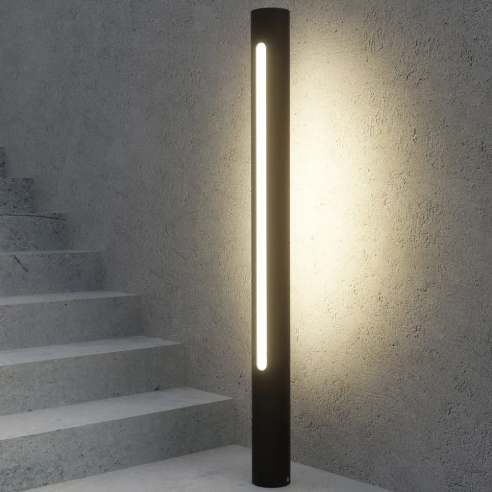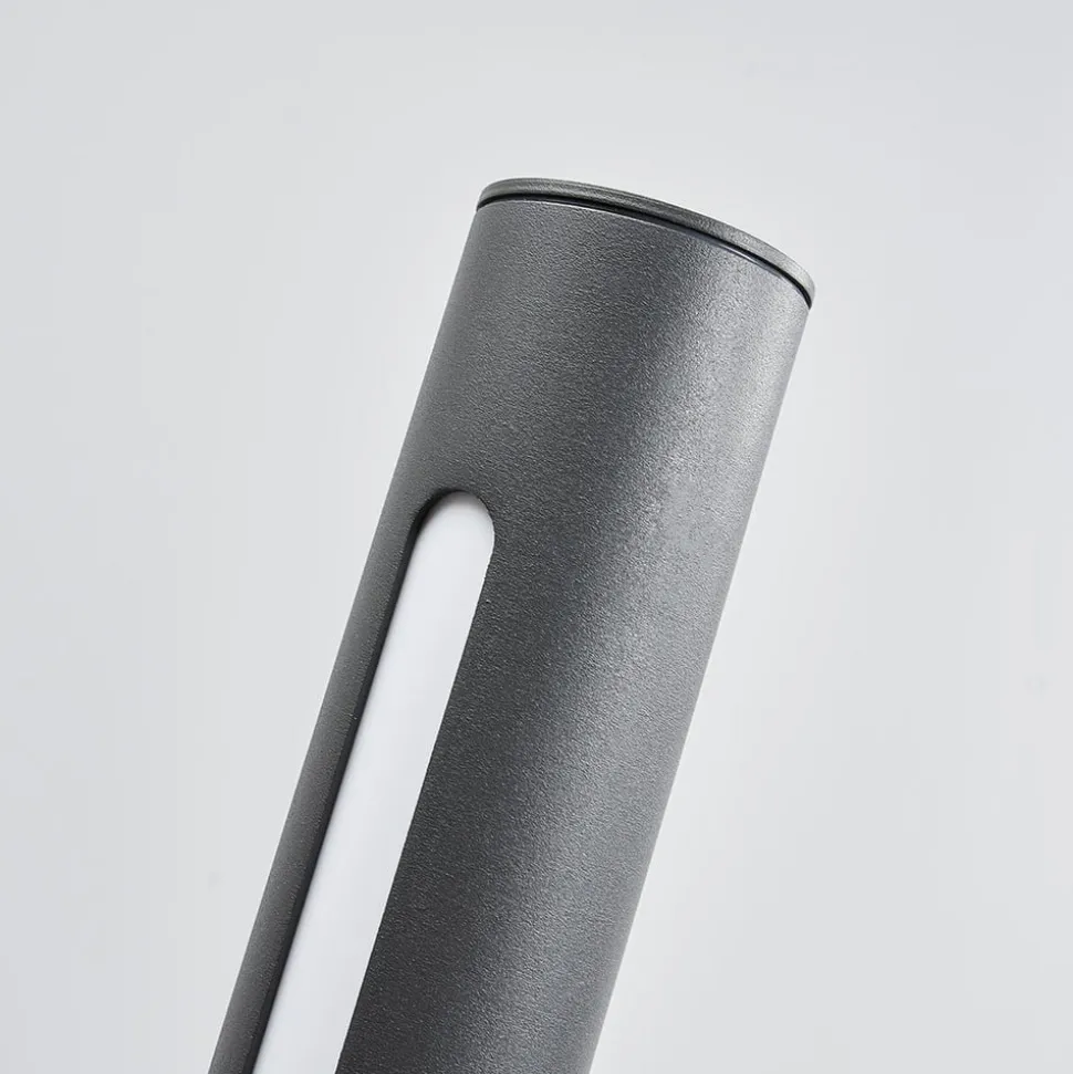 Smalle Tomas LED tuinpadverlichting met decoratieve lichtstroken en donkergrijs oppervlak Deze LED tuinpadverlichting heeft een ronde, cilindervormige vorm en kan gemakkelijk worden geïntegreerd in moderne ruimtes, waar het bijvoorbeeld opritten en tuinpaden goed verlicht, zodat je aangenaam licht hebt en gemakkelijk je weg kunt vinden, zelfs als het donker is. De LED’s verbruiken heel weinig elektriciteit, wat natuurlijk in lijn is met moderne ideeën, zodat je je portemonnee en het milieu kunt beschermen.