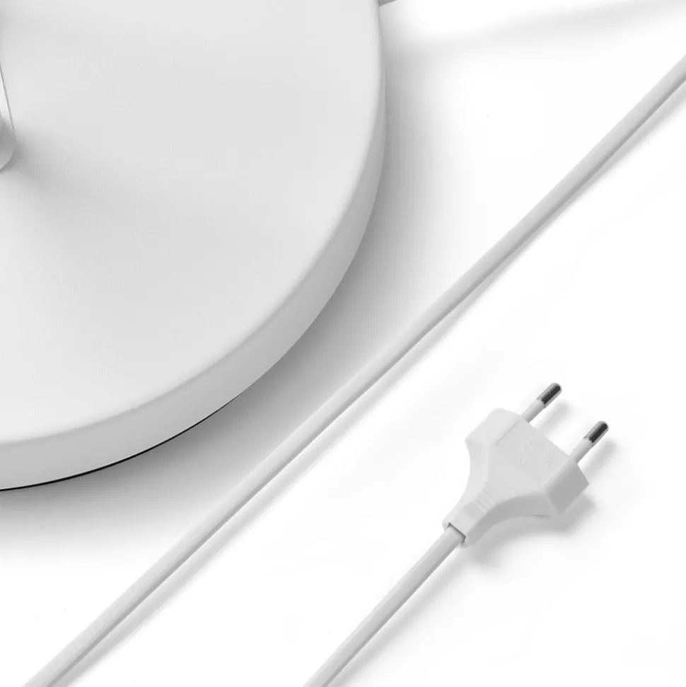 2-lamps vloerlamp Medira in Scandinavische stijl met witte afwerking en gouden kap aan de binnenkant Medira maakt onmiddellijk indruk met haar minimalistische design en stijlvolle expressie, waardoor het de perfecte vloerlamp is voor Scandinavische woonstijlen waarin deze kenmerken – d.w.z. de afwezigheid van onnodige details en een stijlvol totaalontwerp met een esthetische designtaal – bijzonder op prijs worden gesteld. Flex-elementen in het bovenste deel van de armatuur maken het mogelijk om de twee identiek ogende lichtbronnen naar wens uit te lijnen. Dit betekent dat twee personen kunnen profiteren van de voordelen van de vloerlamp, die ideaal is als leeslamp in de woonkamer. Hiervoor kunnen de twee lampen ook afzonderlijk worden bediend met twee schakelaars op het lichtframe. De kappen zijn aan de binnenkant goudkleurig getint, wat perfect past bij het algehele ontwerp en ook een warme noot toevoegt aan het lichtbeeld.