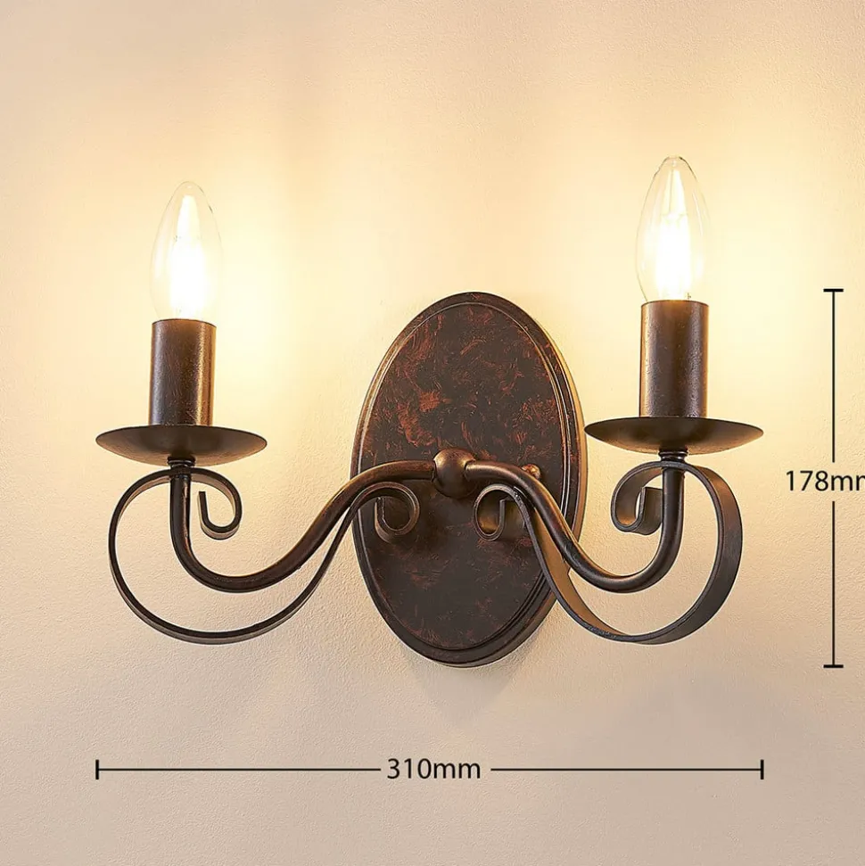 Lucande wandlamp Caleb, 2-lamps, roestkleurig, metaal, E14