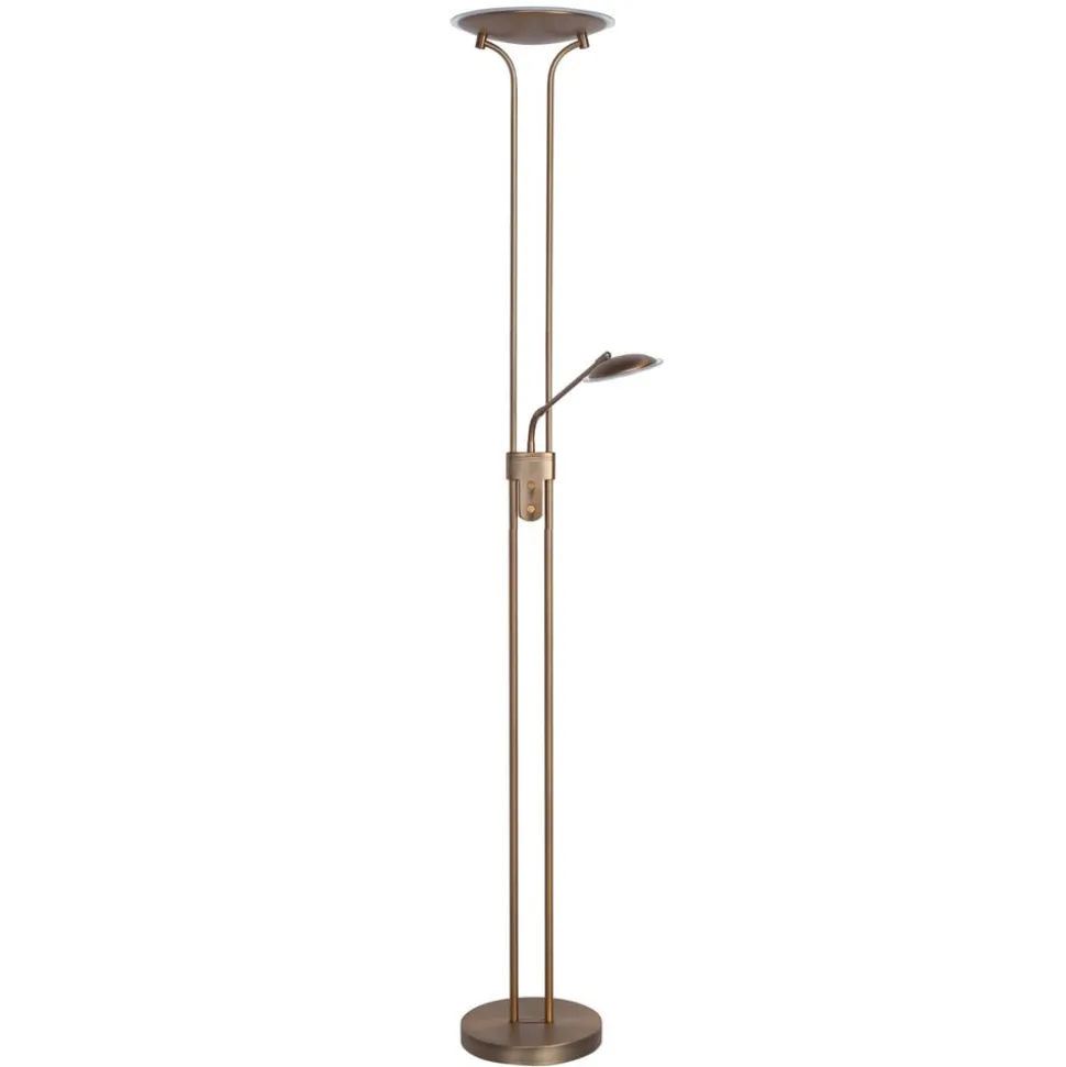 Met 2 dimmers – Lunera LED uplighter met leeslamp Ondanks de hoogte van 180 cm heeft de Lunera LED uplighter dankzij het ontwerp een zeer delicate uitstraling. De vlakke schijnwerperkom met bovenste glazen afdekking zit op het eenvoudige frame en de arm met de verstelbare leeslamp bevindt zich ongeveer halverwege het frame. Deze is ook voorzien van een gesatineerde afdekking om verblinding te voorkomen. Twee draaidimmers op dezelfde hoogte maken het mogelijk om het licht van de LED’s in de schijnwerper en die in de leeslamp onafhankelijk van elkaar aan en uit te schakelen en ze ook te dimmen.