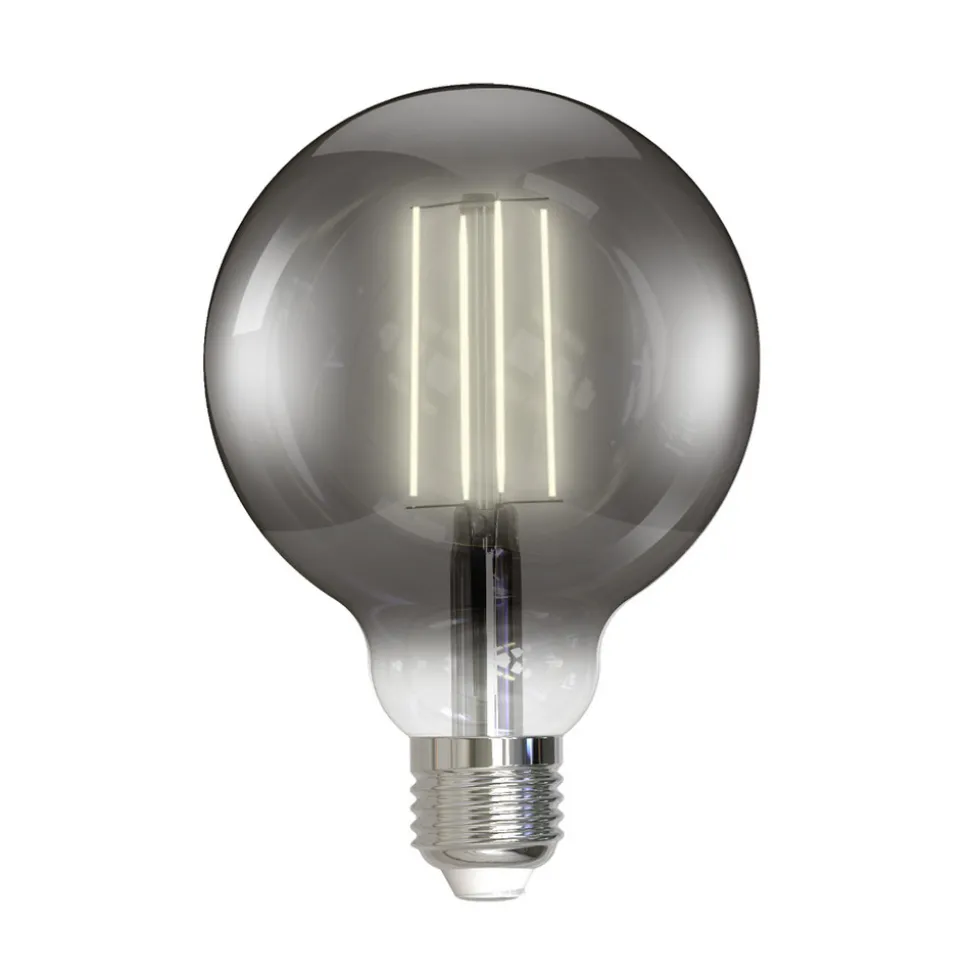 Rookgrijze LED lamp met E27 lampvoet – dimbaar Deze lamp heeft een rookgrijze kleur en een E27 lampvoet. Hij wordt bediend met de gratis Tuya, ZigBee of Philips Hue. Hij is dimbaar en genereert een warmwitte lichtkleur.