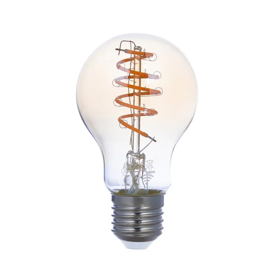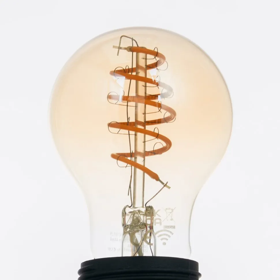 Lamp met E27 lampvoet en amberkleurig oppervlak – bedienbaar via WLAN en Tuya Deze gloeilamp heeft een zeer speciale amberkleurige look en is gemaakt van glas. Hij kan worden geïntegreerd in je Wi-Fi-thuisnetwerk en worden bediend met de gratis Tuya-app (beschikbaar voor iOS en Android). Hij genereert ook een warmwit (2.500 K) lichtkleur en creëert een gezellige sfeer. Spraakbesturing is ook mogelijk met Amazon Alexa of de Google Assistant, en de lamp kan ook worden bediend met de LUUMR APP. Deze is beschikbaar voor zowel Android als Apple en kan eenvoudig worden gedownload op https://play.google.com/store/apps/details?id=luumr.app&hl=en_US of https://apps.apple.com/de/app/luumr/id6470302637.