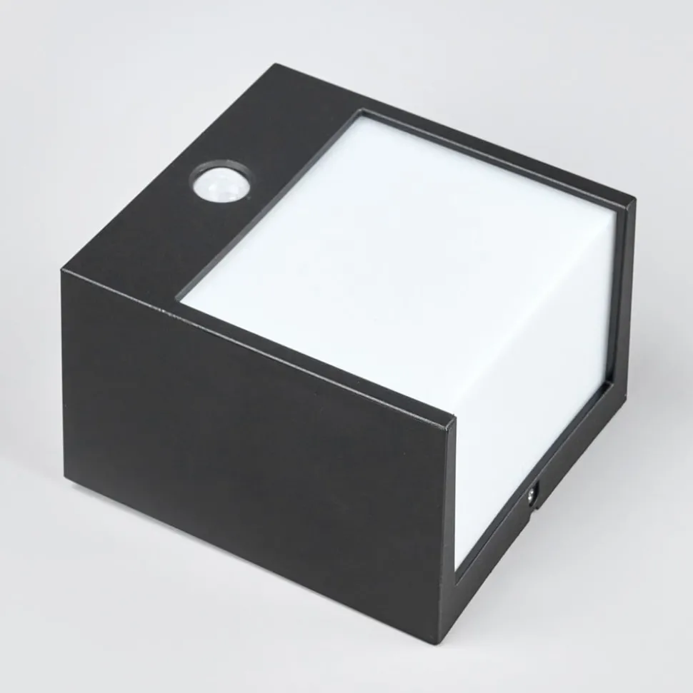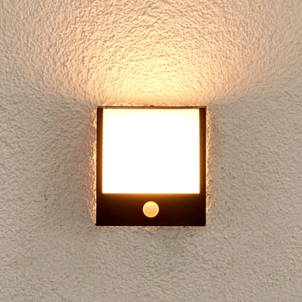 Hoekige LED outdoor wandlamp Macaw met ingebouwde bewegingsmelder