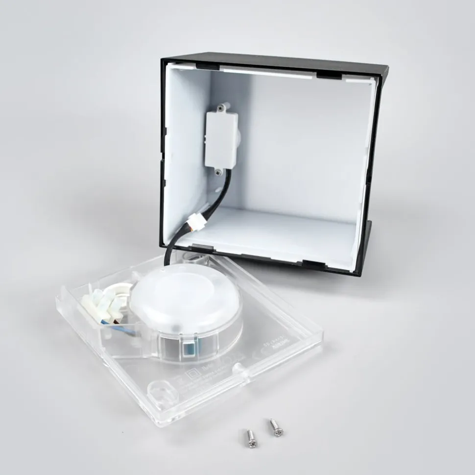 Macaw overtuigt met een moderne, hedendaagse bouwwijze en een eenvoudige elegantie. Het hoekige lamphoofd van de LED outdoor wandlamp bestaat uit kunststof, waarbij het frame zwart en de afdekking over de LED lamp wit is. De gloed is door de specifieke bouwwijze naar voor en naar boven gericht en wordt door de witte kunststof afdekking gelijkmatig verdeelt. Daardoor wordt Macaw als outdoor wandlamp een goed voorbeeld, die ook in buitengebieden een atmosferisch mooie verlichting echt kan waarmaken.