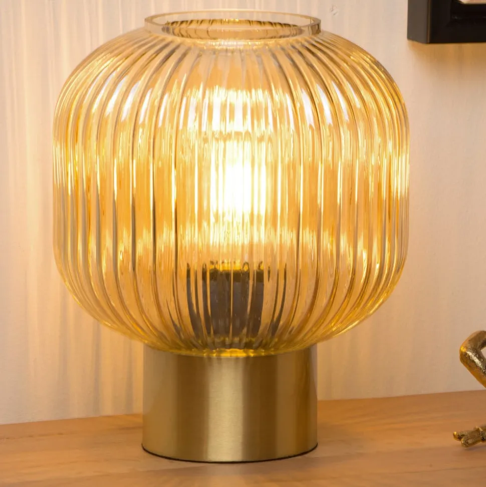 Maloto tafellamp van glas, amber/goud, Ø 20 cm, E27