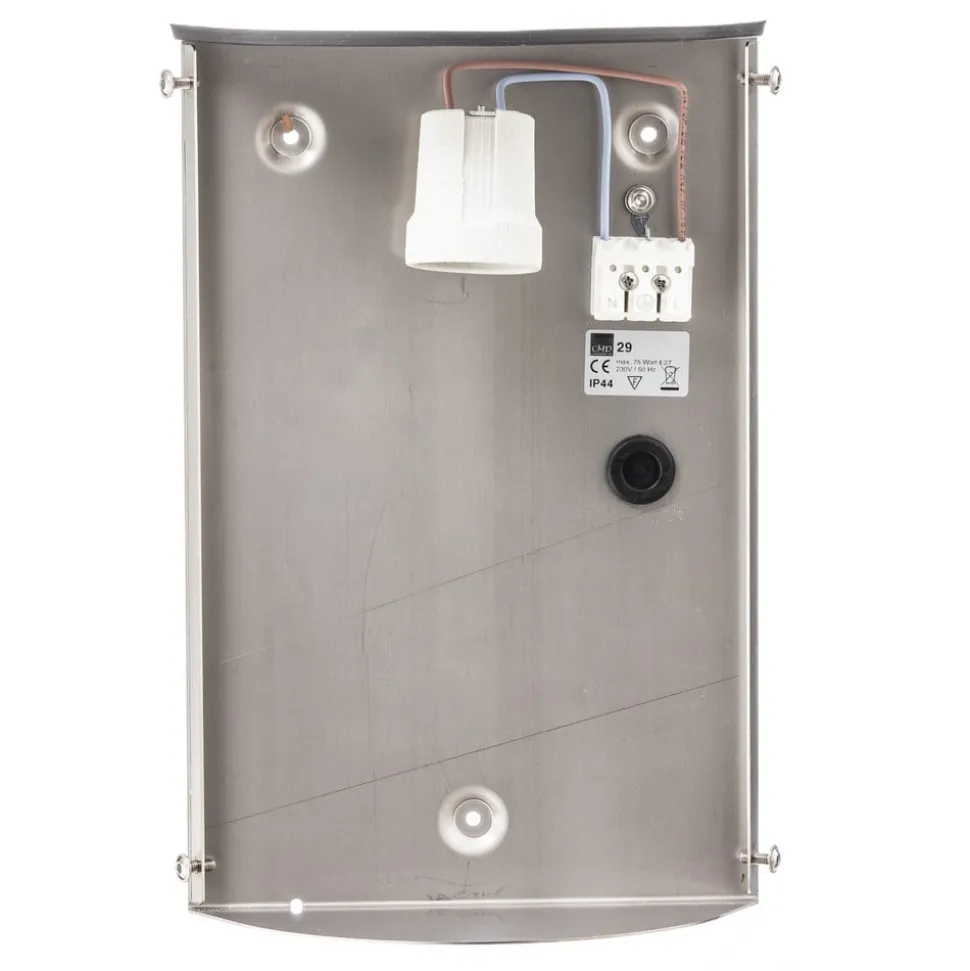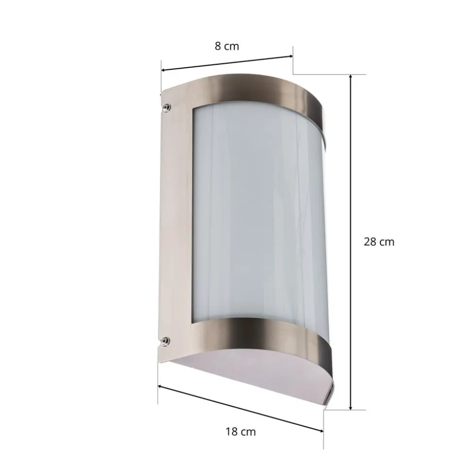 Buitenwandlamp Marco3 van roestvrij staal met gesatineerd front De buitenwandlamp Marco3 bestaat uit een roestvrijstalen frame en een gesatineerde diffuser aan de voorkant, die er goed uitziet op elke gevel. De diffuser zorgt voor een aangenaam gelijkmatige en niet-verblindende verlichting. De lamp is gemaakt van hoogwaardige materialen en wordt gekenmerkt door zorgvuldig vakmanschap.