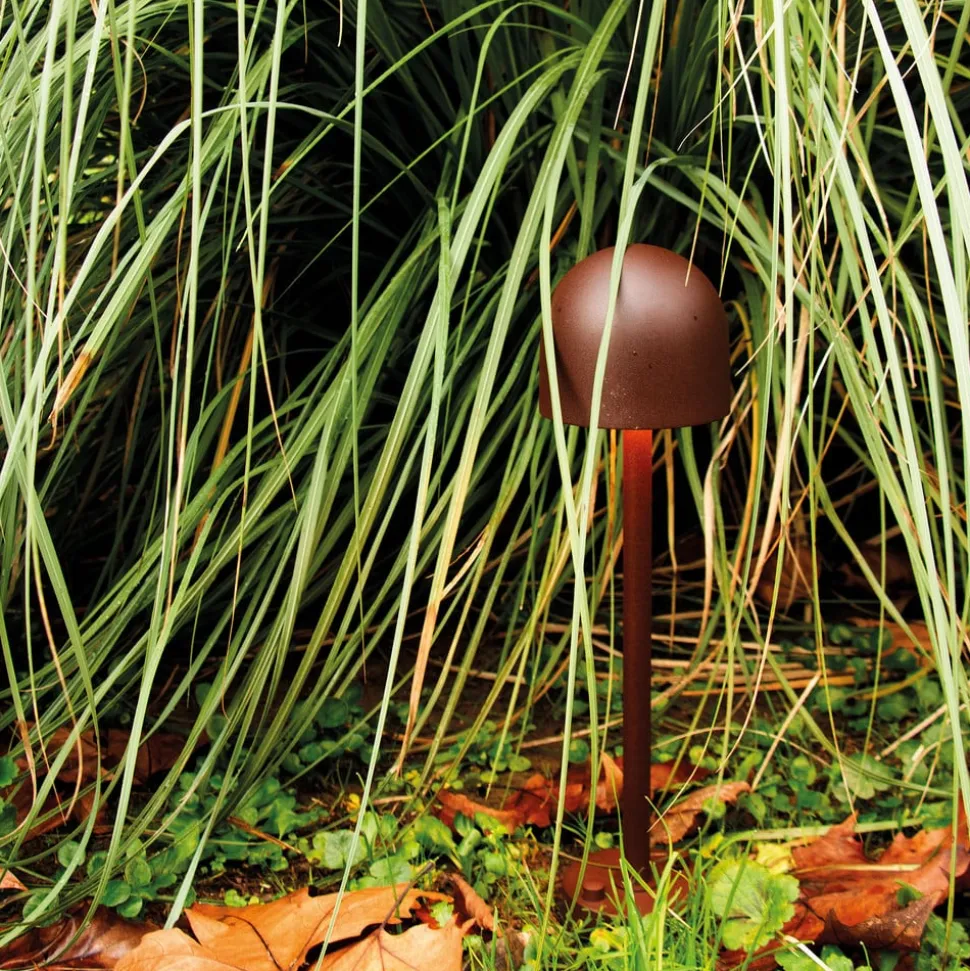 Deze basisarmatuur verrijkt de buitenruimte niet alleen met aangenaam licht, maar past door haar vormgeving ook perfect in haar omgeving. Het ontwerp is geïnspireerd op een eekhoorntjesbroodzwam, waarvan de steel, de halfronde hoed en de roestbruine kleur in de basisarmatuur worden weerspiegeld. Boleto harmonieert dus zeer goed met groene ruimten. Tegelijkertijd ogen de schroefkoppen op de voet en de afwerking in cortenstaal ook industrieel. De LED’s zijn binnenin de kap, die aan de onderkant open is, achter een opalen afdekking van polycarbonaat gemonteerd en stralen het licht diffuus op de omringende achtergrond uit, zodat een onopvallend en niet-verblindend, indirect verlichtingseffect wordt bereikt.
