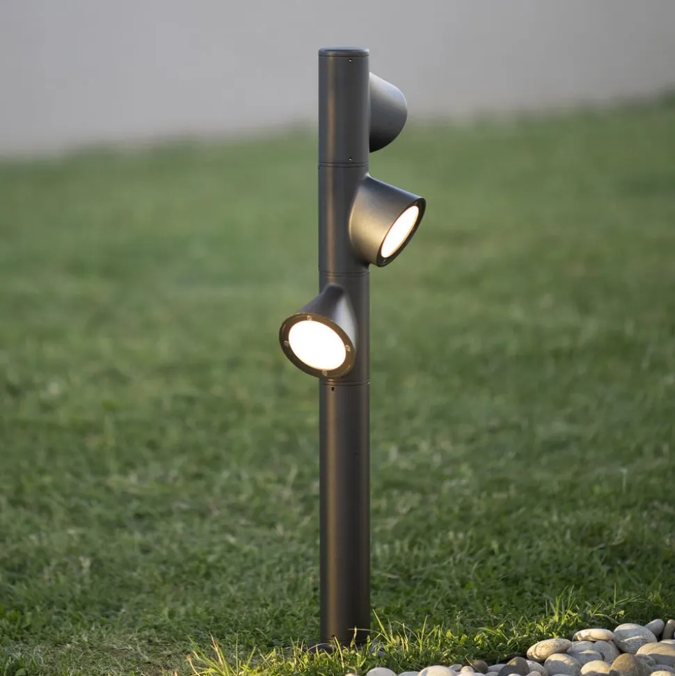 De drielamps Bruce padverlichting is een overtuigende aanpasbare lichtbron voor moderne buitenfaciliteiten. De ronde lichtopeningen met geïntegreerde LED’s en opalen afdekkingen van polycarbonaat kunnen bij de installatie onafhankelijk van elkaar worden gedraaid, zodat het warmwitte licht een bepaalde zone of de omgeving aan alle kanten verlicht. De aluminium constructie als antracietzwarte cilinder is optisch onopvallend.
