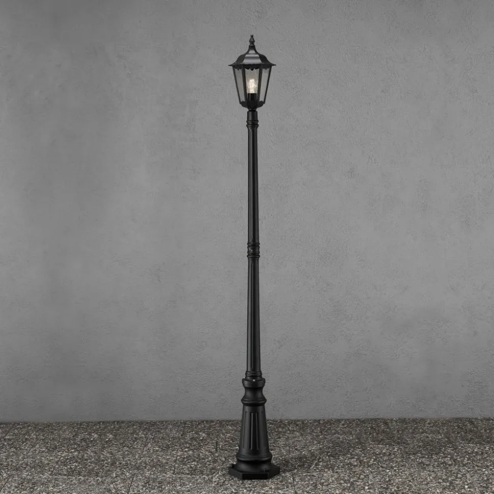 Antiek aandoende buitenlantaarn FIRENZE van aluminium met fraai vormgegeven lantaarn op een mooi versierde paal. De lamp zorgt voor een zeer goede verlichting dankzij het heldere glas. De buitenlantaarn is leverbaar in wit, groen of zwart mat gelakt en wordt inclusief paal geleverd.