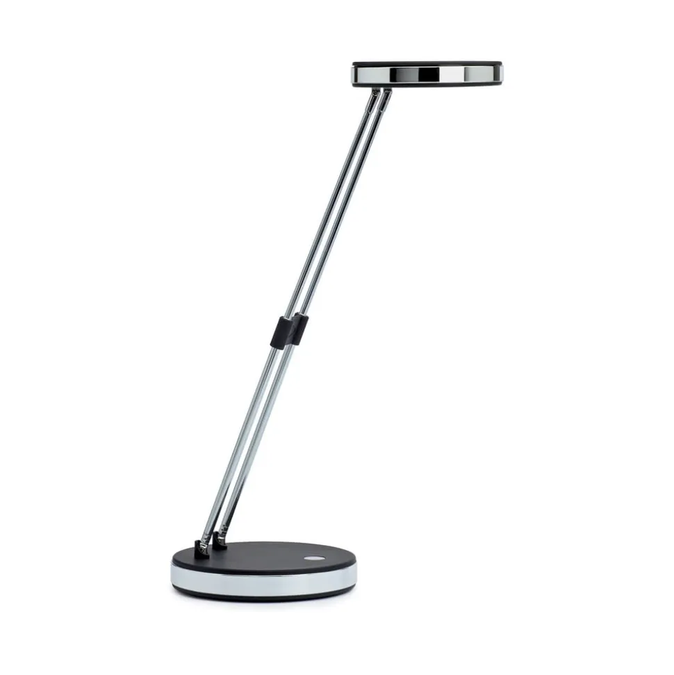 MAULpuck LED bureaulamp met handige dubbele telescopische arm MAULpuck is een zeer handige, ruimtebesparende, energiezuinige lichtbron die kan worden gebruikt om de lichtomstandigheden te optimaliseren, bijvoorbeeld op het bureau, naar individuele behoeften. De dubbele telescopische arm kan worden uitgeschoven van 18,5 cm tot maximaal 33 cm en de kop en arm van de bureaulamp kunnen worden gedraaid. Das maakt het extreem gemakkelijk om de richting van het licht naar wens aan te passen. Dankzij het handige ontwerp neemt MAULpuck weinig ruimte in beslag. Hij kan ook worden opgevouwen voor eenvoudig transport in een aktetas of opgeborgen in een lade. De geïntegreerde diffuser zorgt ervoor dat er weinig schaduw wordt geworpen. Die MAULpuck LED bureaulamp is stabiel dankzij een verzwaringselement in de voet, die ook is uitgerust met een pad om het bureau te beschermen – Schakelaar ingebouwd in de voet van de lamp