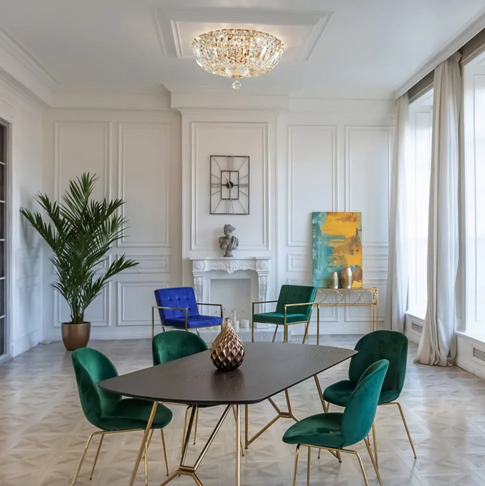 Basfor plafondlamp: elegante verlichting met glazen kristallen pendel De Basfor plafondlamp is een stijlvolle verlichtingsoplossing die naadloos past in de esthetiek van de woonkamer, eetkamer, hal en slaapkamer. Het armatuur is ontworpen voor drie E14 lampen en biedt een flexibele verlichtingsoptie die kan worden aangepast met een externe dimmer om de gewenste sfeer te creëren.