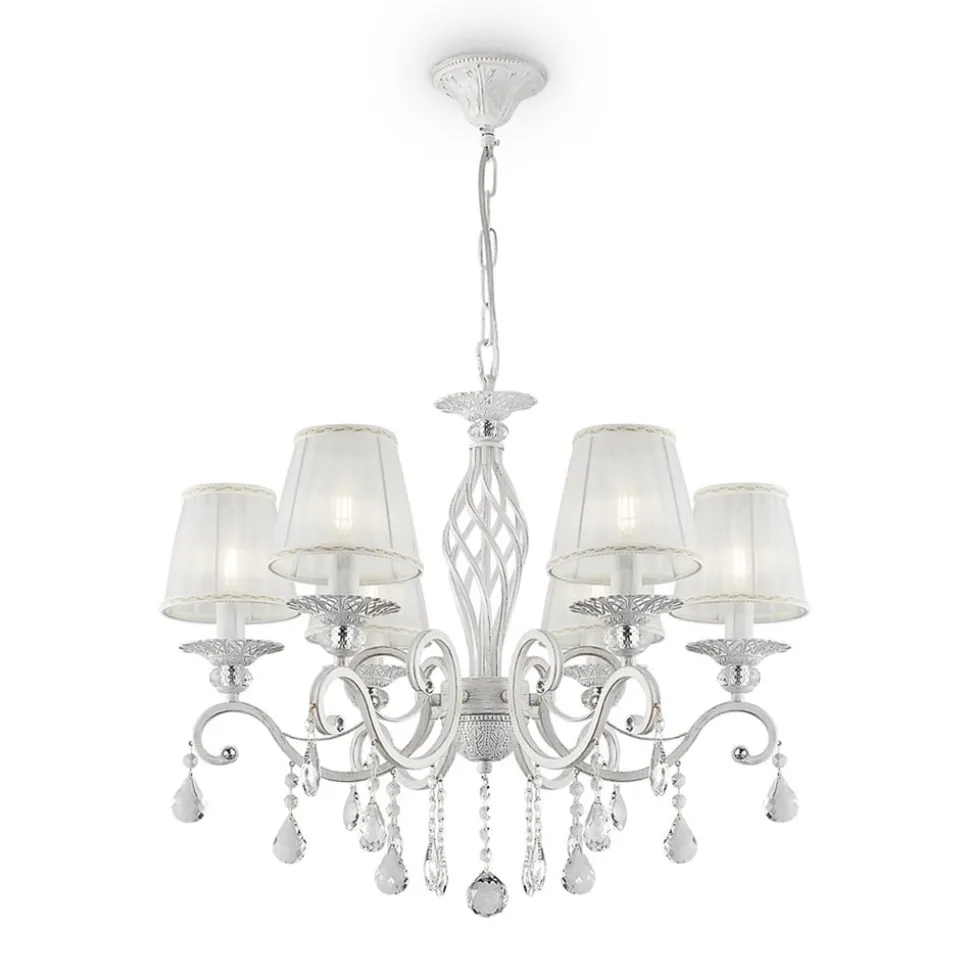 Maytoni Grace kroonluchter, wit, 6-lamps, organza, E14
