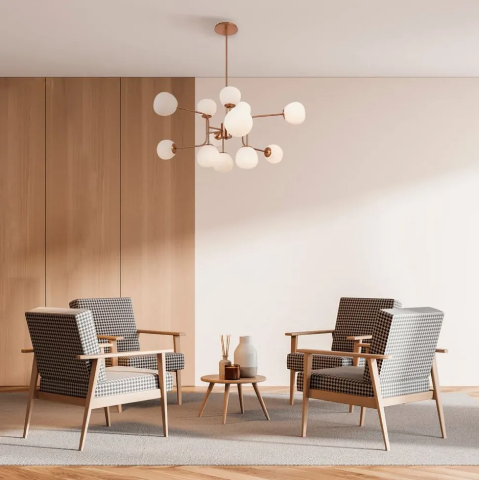 Maytoni kroonluchter Erich, messing rosé glas/metaal 12-lamps.