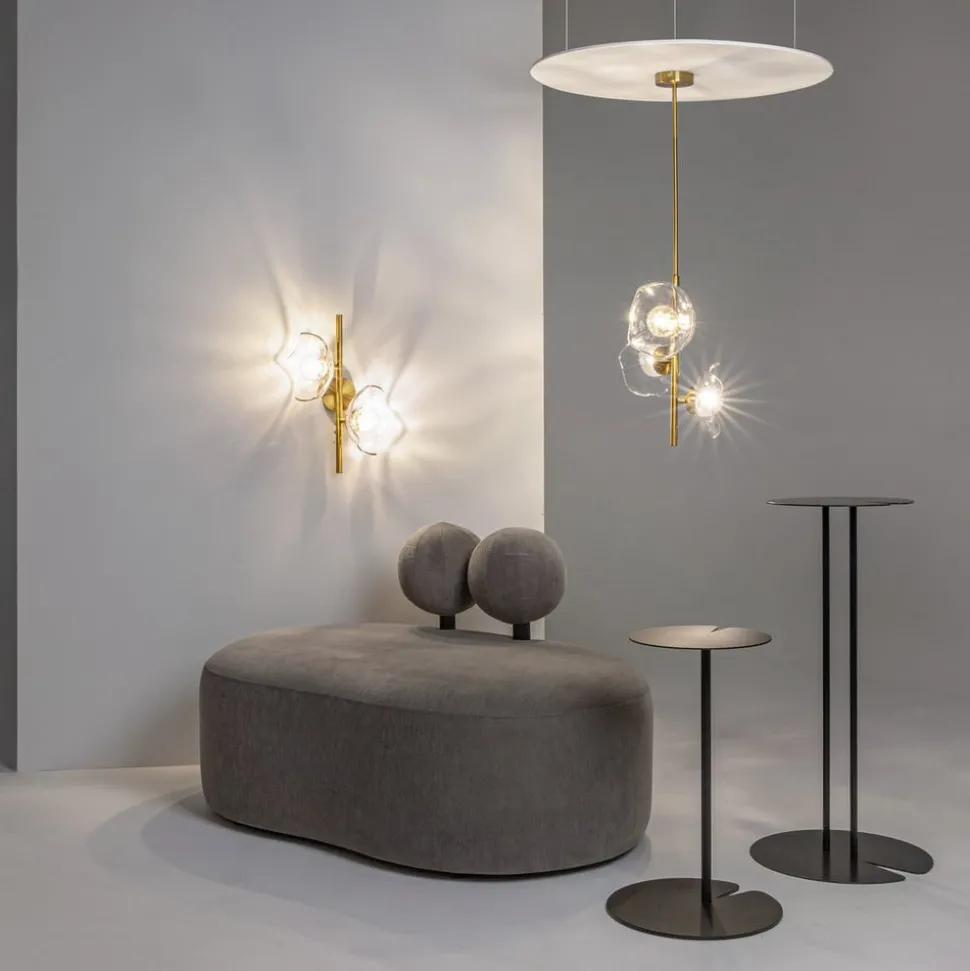 2-lamps Miracle wandlamp van metaal en glas Afbeeldingen van Japanse gravures uit de 19e eeuw vormden de inspiratie voor deze serie, waartoe de Miracle wandlamp behoort. De Oosterse kunst van die tijd beïnvloedde in grote mate de Europese Art Deco stijl, die de creatieve technieken van Japanse kunstenaars combineerde met Westerse tradities. Het belangrijkste accent in deze serie zijn de gegoten glazen kappen. De vloeiende vormen creëren indrukwekkende lichtreflecties op naburige muren wanneer het licht wordt ingeschakeld. Voor twee G9 lampen (niet inbegrepen, zie accessoires).