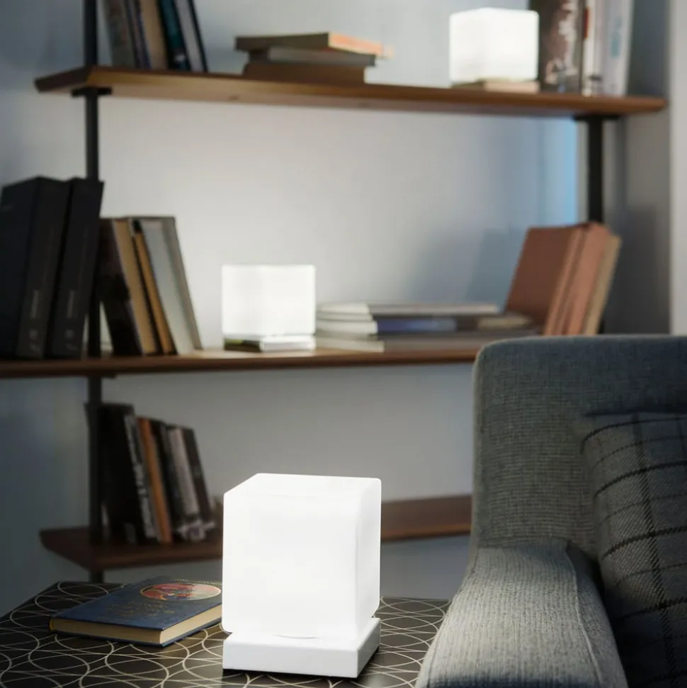 Vierkante LED tafellamp met geometrische charme en een aanraakdimmer