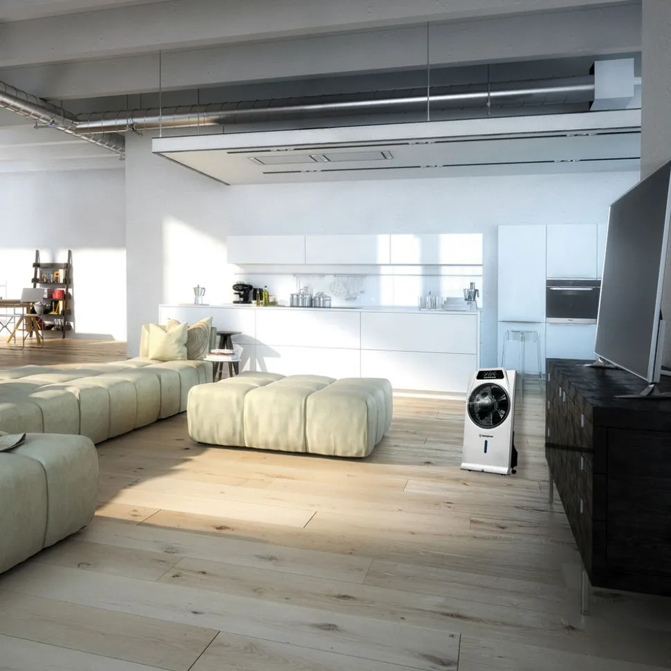 Krachtige standventilator Cascata met geïntegreerde luchtbevochtiger