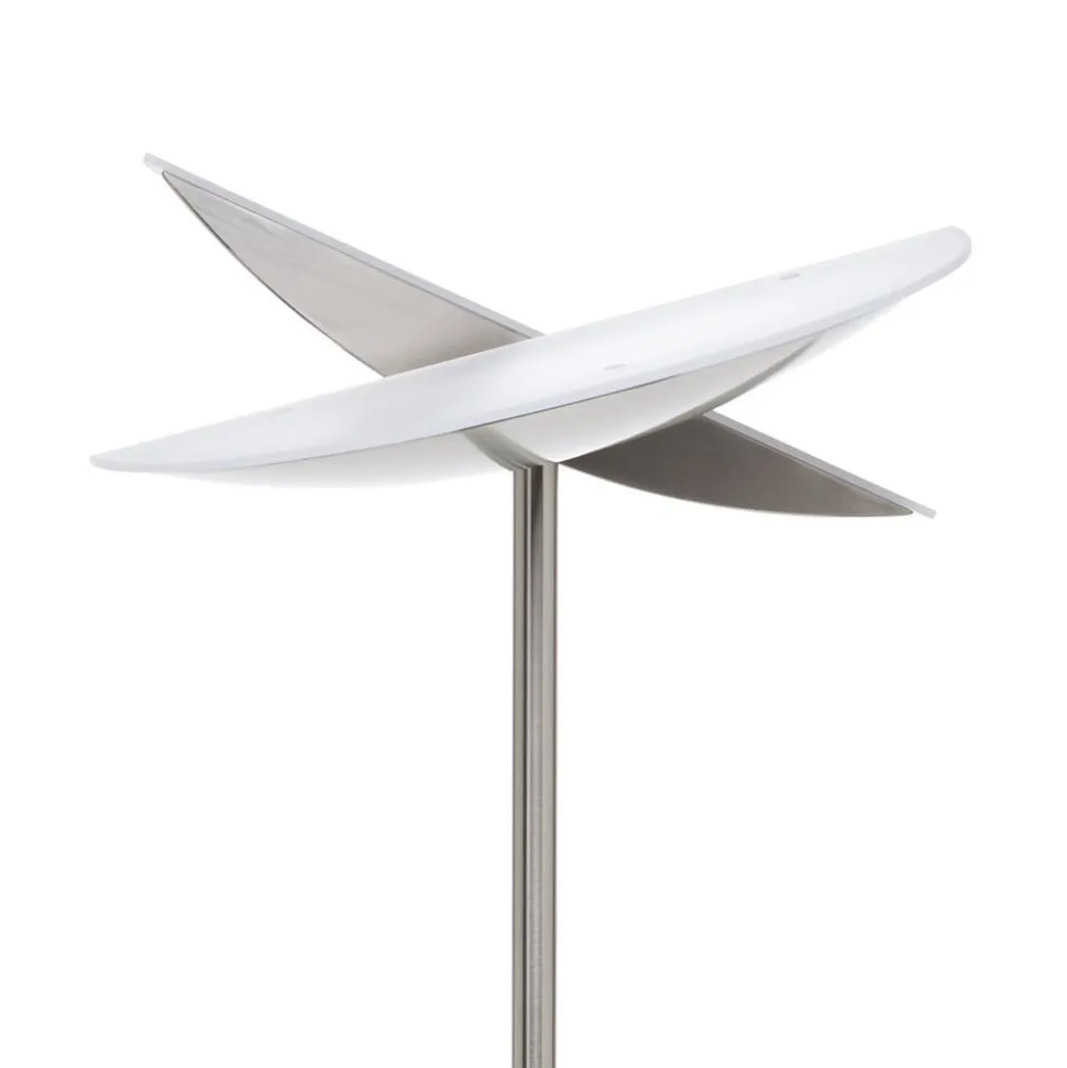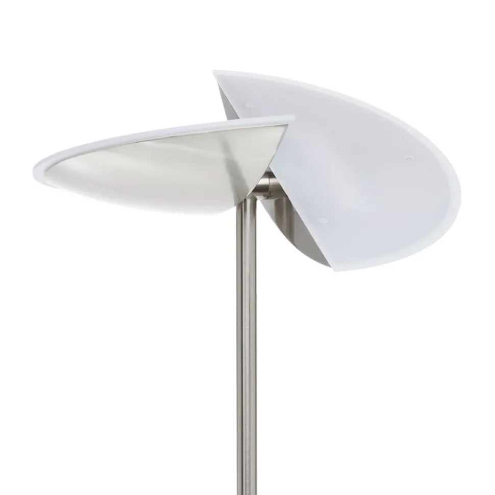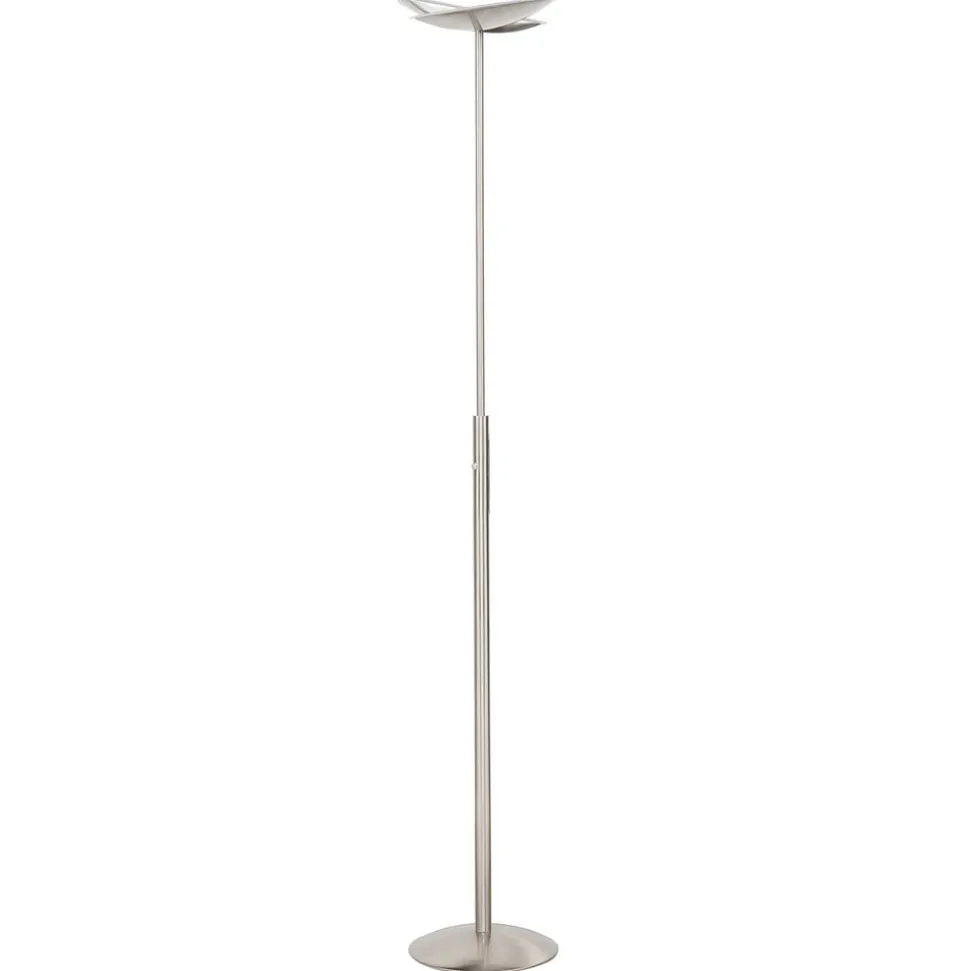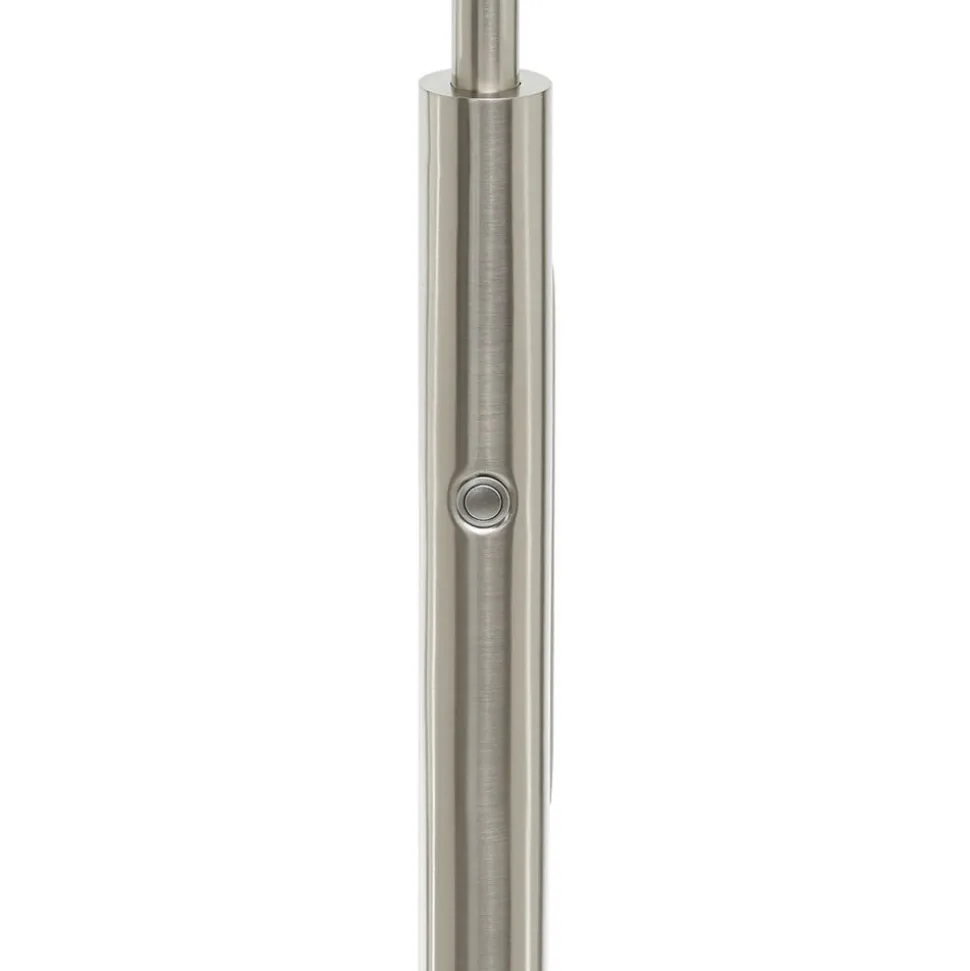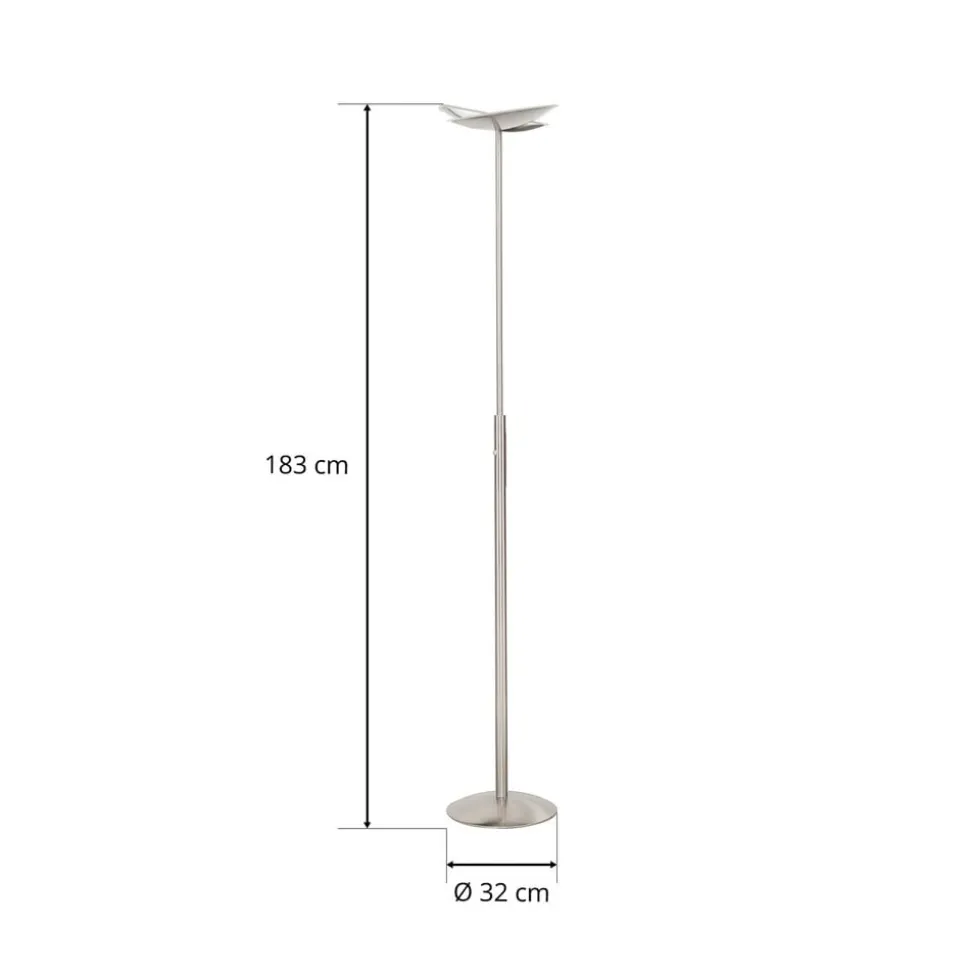 Met dimmer – Sapporo LED plafondring met gedeelde kapEen bijzonder kenmerk van de Sapporo LED plafondring van metaal in nikkel look is de gedeelde lampenkap, die bestaat uit twee halfronde elementen die afzonderlijk kunnen worden gedraaid. Hierdoor kan het licht in verschillende richtingen worden gericht – in tegenstelling tot een conventionele plafondring die alleen star naar boven schijnt. De halfronde kappen met een gesatineerde, lichtjes uitstekende afdekking zijn uitgerust met warmwitte LED’s. Een dimmer die halverwege de stang is gemonteerd, biedt nog meer flexibiliteit op het gebied van verlichting.
