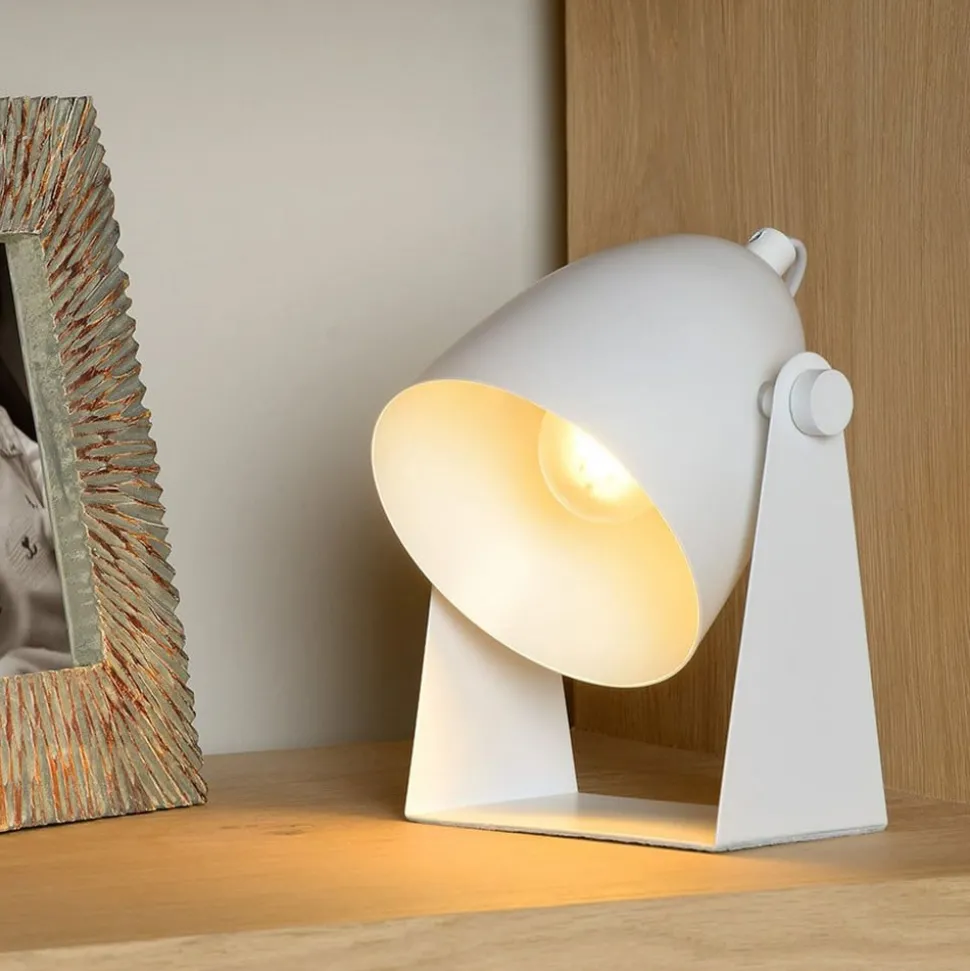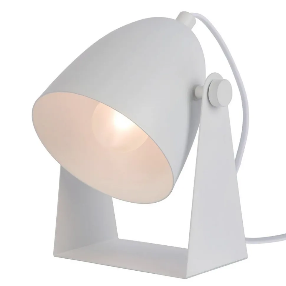 Compacte tafellamp Chago in stralend wit Dankzij de compacte Gross is de tafellamp Chago in het wit Ideal voor gebruik op een plank, op een dressoir of zelfs op een nachtkastje. De kop van de lamp kan worden gekanteld, waardoor de lichtkegel naar wens kan worden aangepast. Die neutrale witte kleur past bij elk type interieur en gaat discreet op in het totaalbeeld.