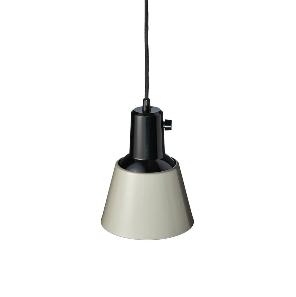 De kap is een afgeknotte kegel van metaal die aan de onderkant open is en aan de bovenste koepel van zwart bakeliet kan worden gedraaid. De lichtkegel kan dus naar wens worden gericht, bijvoorbeeld naar de linker- of rechterkant van een lange tafel. Bovendien is er een draaischakelaar die onmiddellijke bediening rechtstreeks op de armatuur mogelijk maakt, zonder dat naar de wandschakelaar moet worden gegaan. Extern schakelen en dimmen blijft mogelijk (met de schakelaar op het armatuur). De ophanging bestaat uit een textielkabel en een ronde stalen kap in zwart.