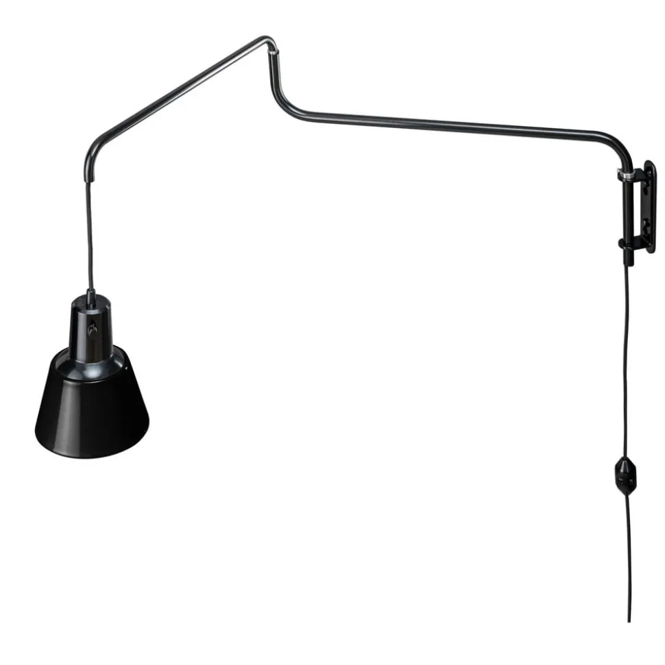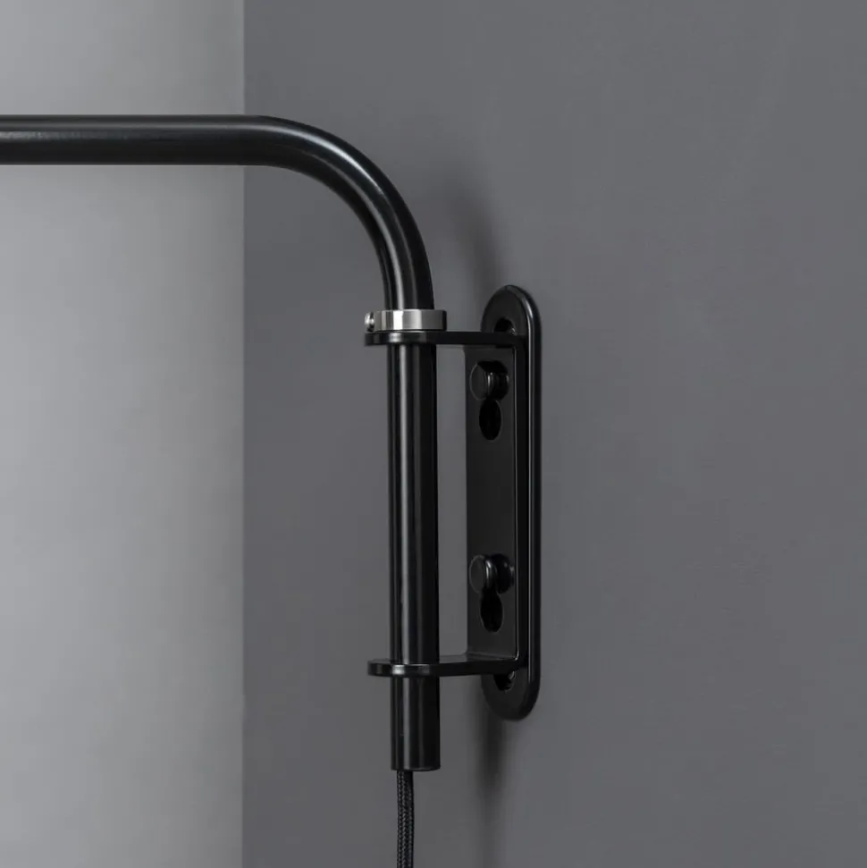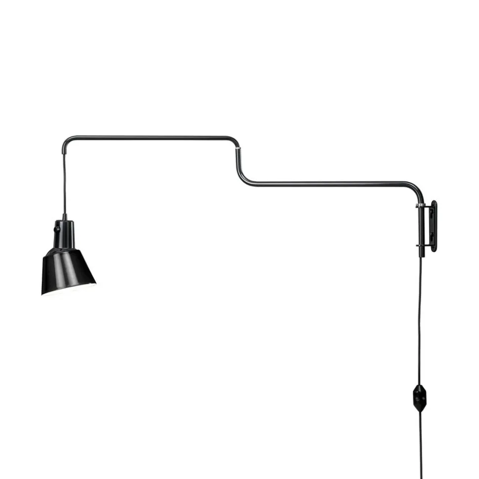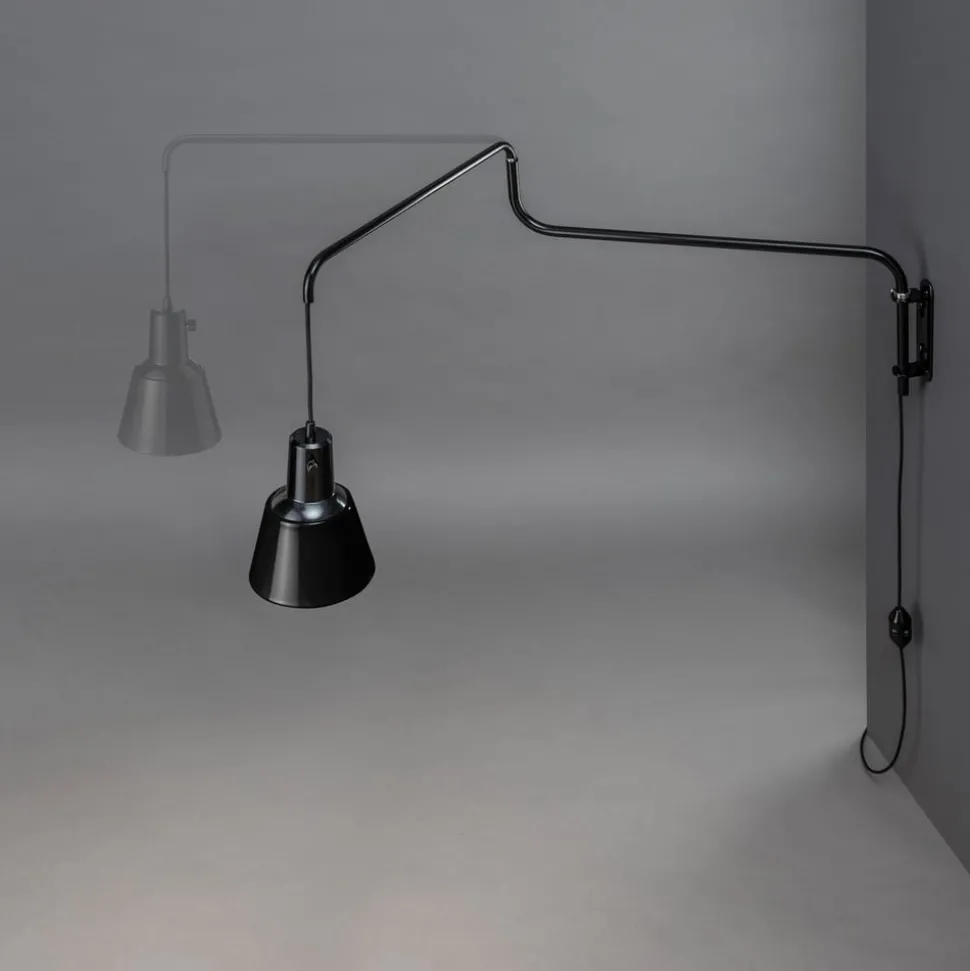Extreem flexibel: wandlamp K830 van staal met geëmailleerde kap, Made in GermanyHet oorspronkelijke ontwerp van de veelzijdige wandlamp K830 stamt uit de jaren 1930. Het werd ontwikkeld door de Duitse industrieel ontwerper Werner Glasenapp. Nu wordt K830 tot leven gebracht door midgard, een fabrikant van armaturen die in 1919 werd opgericht en nog steeds uitsluitend in Duitsland produceert. De basis is gemaakt van zwart gelakte stalen buizen die worden ondersteund door een eveneens stalen en zwart afgewerkte muurbeugel. Beide armen zijn flexibel zwenkbaar voor een optimale uitlijning van het licht. Bovendien kan de ophanging van het rolgordijn worden gevarieerd, zodat het tot 109 cm kan worden opgehangen. Daartoe wordt aan de textielkabel onder de wandsteun een contragewicht bevestigd. Deze is voorzien van een stekker, zodat dit armatuur gemakkelijk via een stopcontact van stroom kan worden voorzien. Bovendien kan de kap zelf, die van email is gemaakt, 360 graden worden gedraaid. Zo verlicht de K380 het gewenste gebied feilloos. Omdat deze innovatieve wandlamp zonder gloeilamp wordt geleverd, kan de lichtstemming naar wens worden beïnvloed door de keuze van de te gebruiken E27 lamp (zie accessoires). De witte binnenkant van de kap reflecteert het licht en zorgt zo voor een goede verlichting. Deze multifunctionele wandlamp wordt in- en uitgeschakeld met een draaischakelaar op de kap.