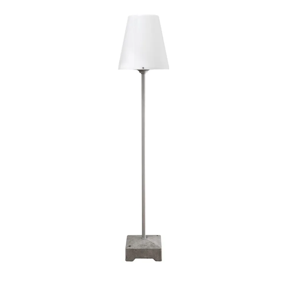 Vriendelijk licht rondom het huis met de vloerlamp New Lucca Als modieuze vloerlamp kan New Lucca je balkon of terras omtoveren tot een kamer met aangenaam licht. De sfeer die deze lamp creëert wordt versterkt door het opaalkleurige kunststof, dat sfeervol licht doorlaat. De meegeleverde grondspies is ongeveer 1,50 meter hoog. Verdere accessoires zijn een voet, voedingskabel en stekker.