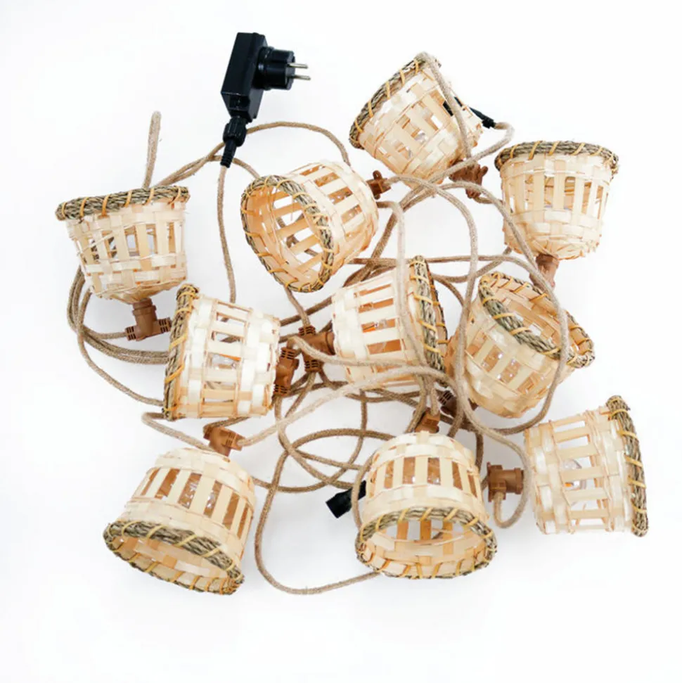 Aurora LED lichtkettingen met voedingskabel en kappen van natuurlijke vezels Die Aurora LED lichtkettingen hebben 10 kappen van natuurlijke vezels die de vervangbare lampen omringen. Die baden het balkon, terras of de tuin in Warm licht en creëren een gezellige sfeer. Dankzij de steekkabel kunnen de lichtkettingen ook gemakkelijk binnenshuis worden gebruikt, bijvoorbeeld in de woonkamer of slaapkamer – beschermingsgraad IP44 – maximaal 4 lichtkettingen kunnen met elkaar worden gecombineerd