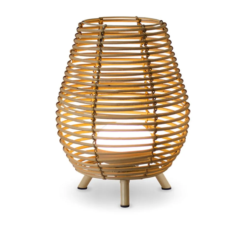 De Bossa LED tafellamp is gemaakt van rotan en brengt zo een mooie natuurlijke uitstraling in de woonruimte. De open kap straalt het warme licht naar alle kanten uit en creëert zo een aangename sfeer die uitnodigt om te blijven hangen. De meegeleverde lamp kan worden opgeladen via de USB-kabel (incl.) en kan ook worden gedimd met de meegeleverde afstandsbediening. Dankzij de beschermingsgraad IP54 kan Bossa binnen en buiten als lichtbron worden gebruikt, bijvoorbeeld op het terras of balkon.